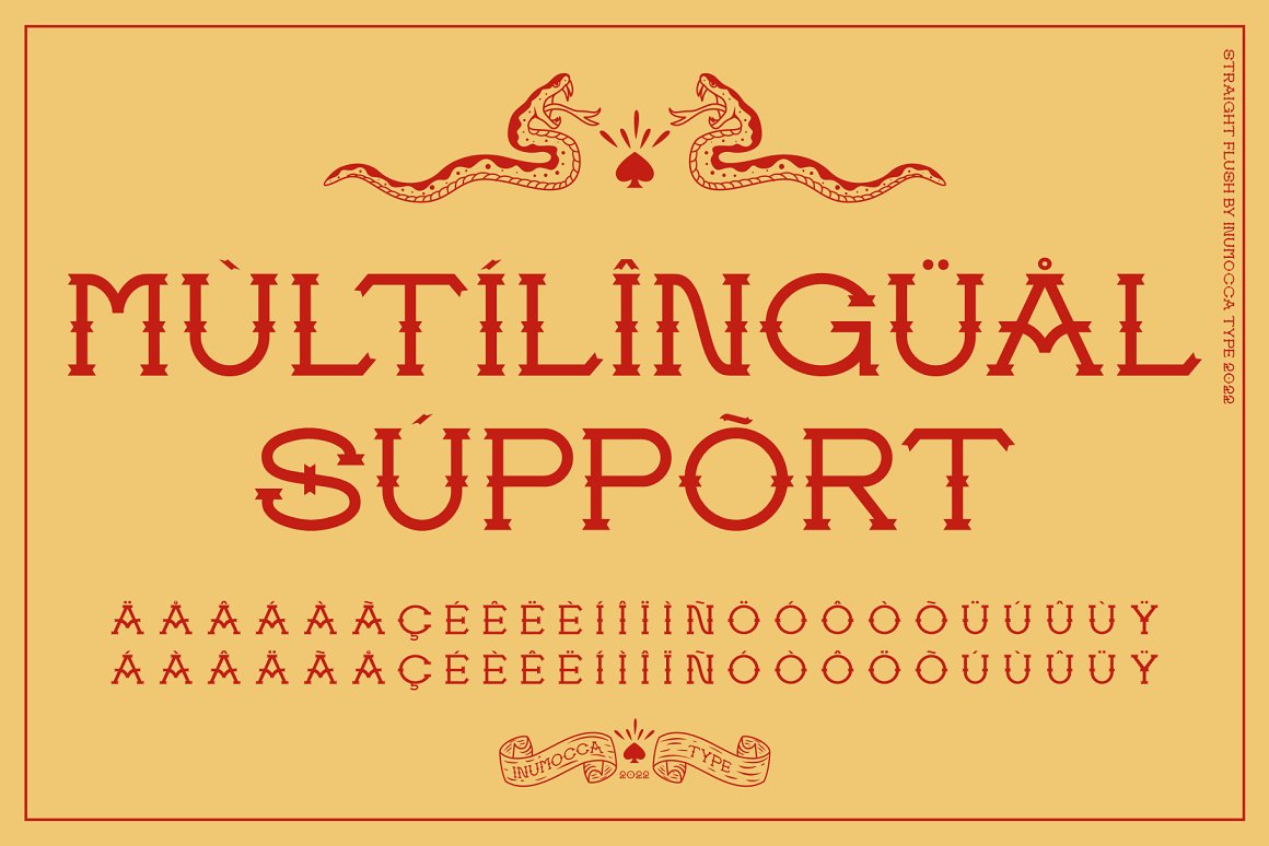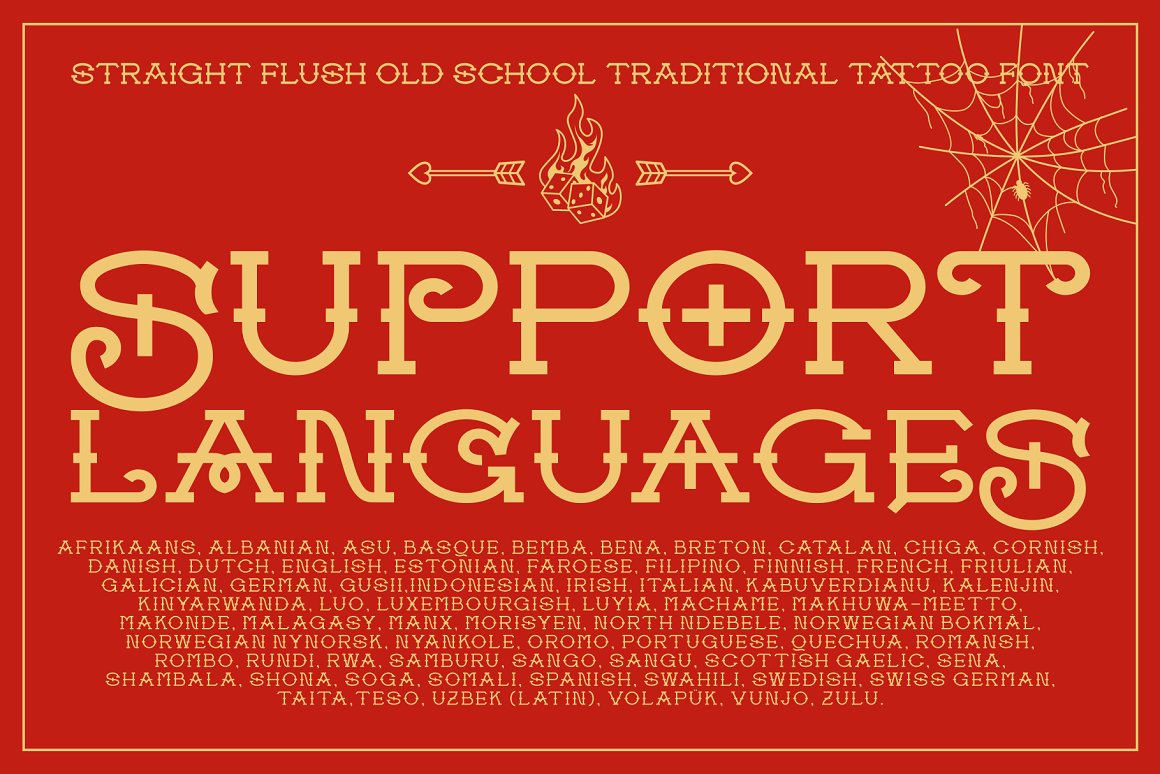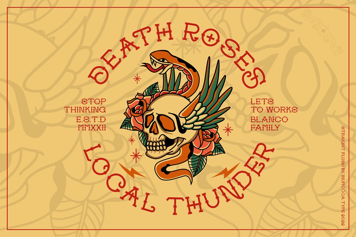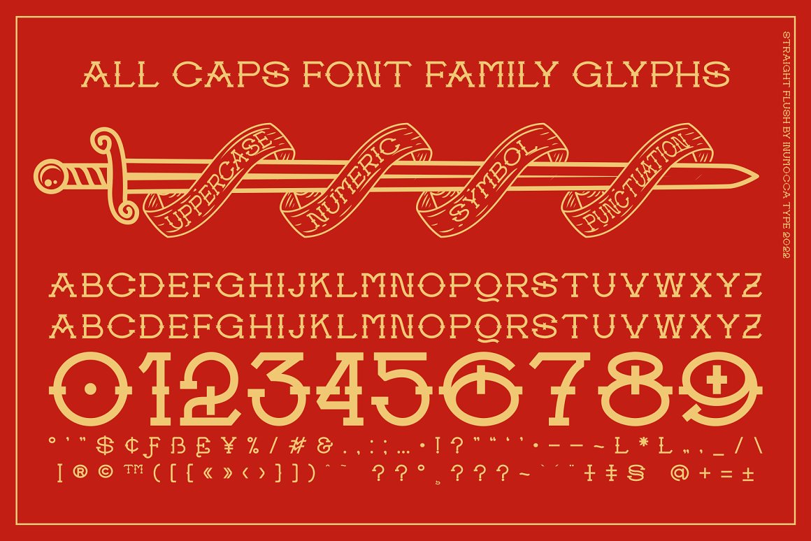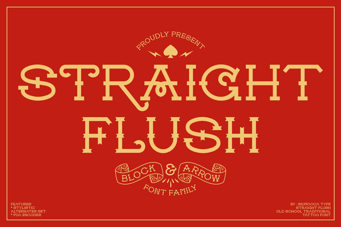 Straight Flush font family inspiration from Old school traditional tattoo font, simple and Strong Charachters. come with some simple Alternates for covering your Project, like Branding, Movie Title, Headline Letter, Bookcover or Book Content, Magazine cover, Poster, Quotes Lettering, Logos, and more your project design.