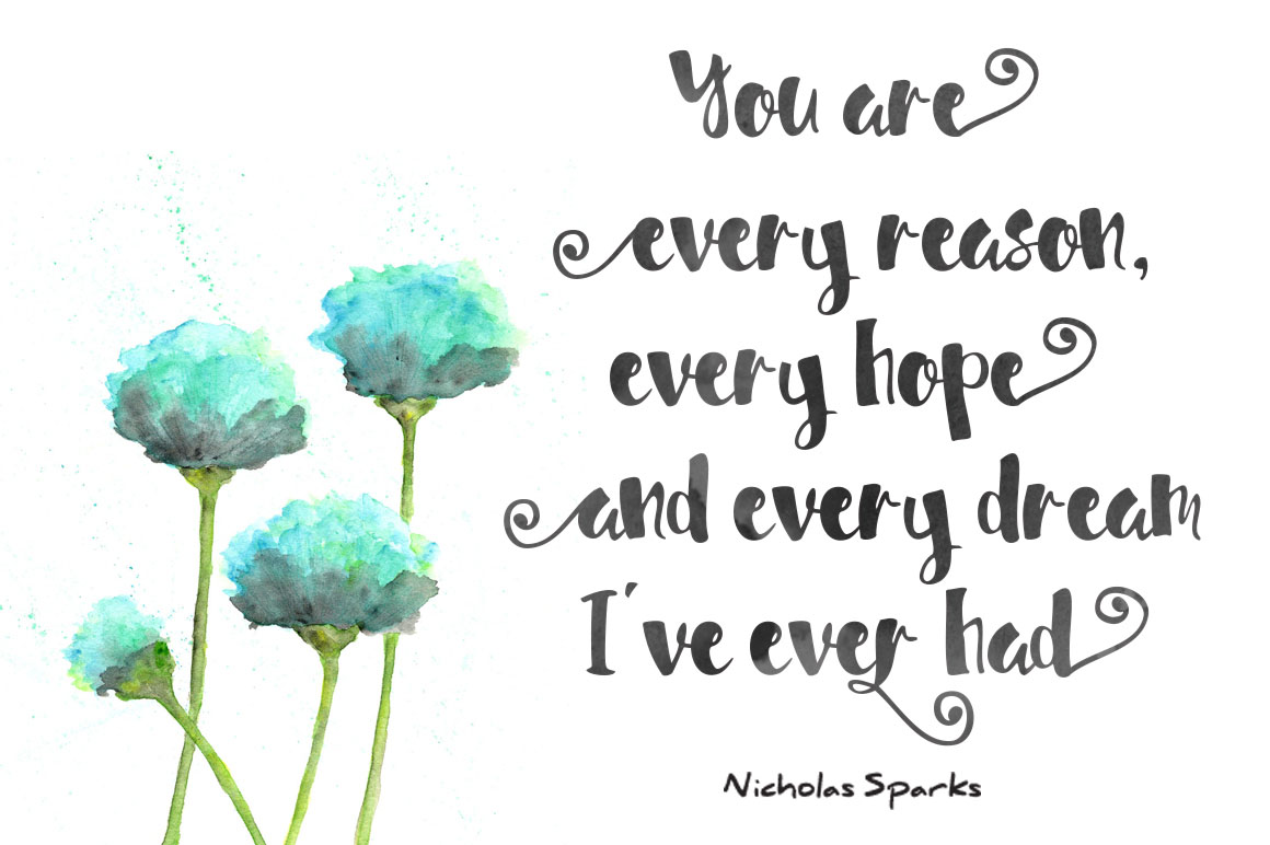 Jellysugar Typeface is a beautiful handmade brush script give the natural looks. 257 glyphs and alternate character contain with opentype features. Stylistic alternates, Swash and more.You can access all those alternate characters by using OpenType savvy programs such as Adobe Illustrator and Adobe InDesign. Great for Apparel Brand, any greeting cards, book cover, Painting design style, or any design that needs natural and personal touch. Mix and match the alternate characters to add an attractive message to your design.