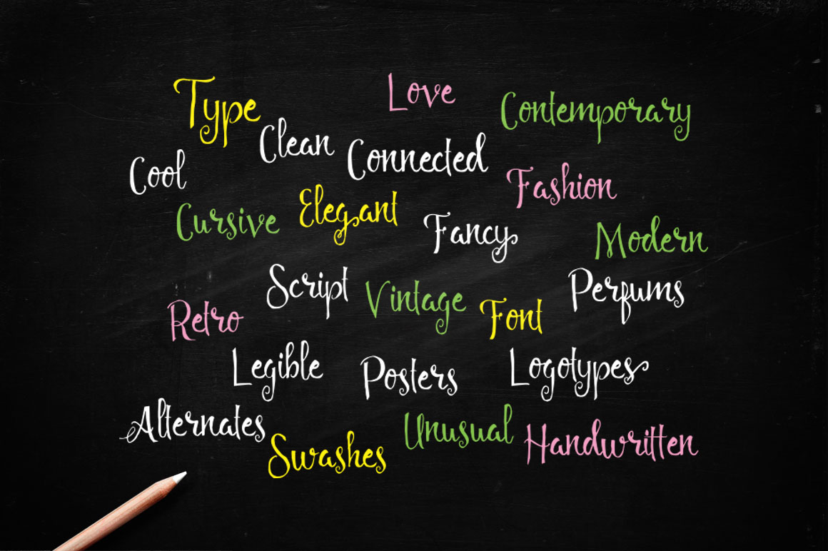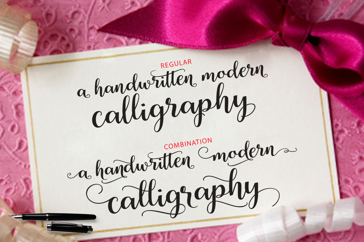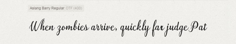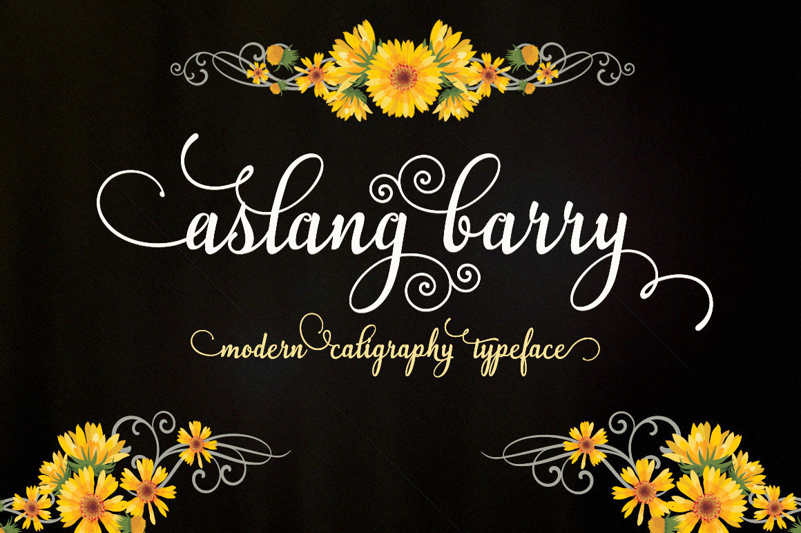 Aslang Barry Script is another lovely modern calligraphy typeface. Combining the style of classic calligraphy with an modern style. Typeface with a dancing baseline, modern and elegant touch. Aslang Barry Script features 525 + glyphs and 300 alternate characters, including initial and terminal letters, alternates, ligatures and multiple language support.