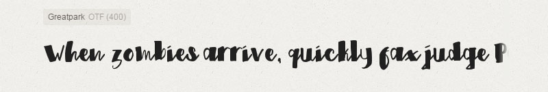Greatpark Typeface is a beautiful handmade brush script give the natural looks. 241 glyphs and alternate character contain with opentype features. Stylistic alternates, Ornament, Swash and more.You can access all those alternate characters by using OpenType savvy programs such as Adobe Illustrator and Adobe InDesign. Great for Apparel Brand, any greeting cards, book cover, Painting design style, or any design that needs natural and personal touch. Mix and match the alternate characters to add an attractive message to your design.