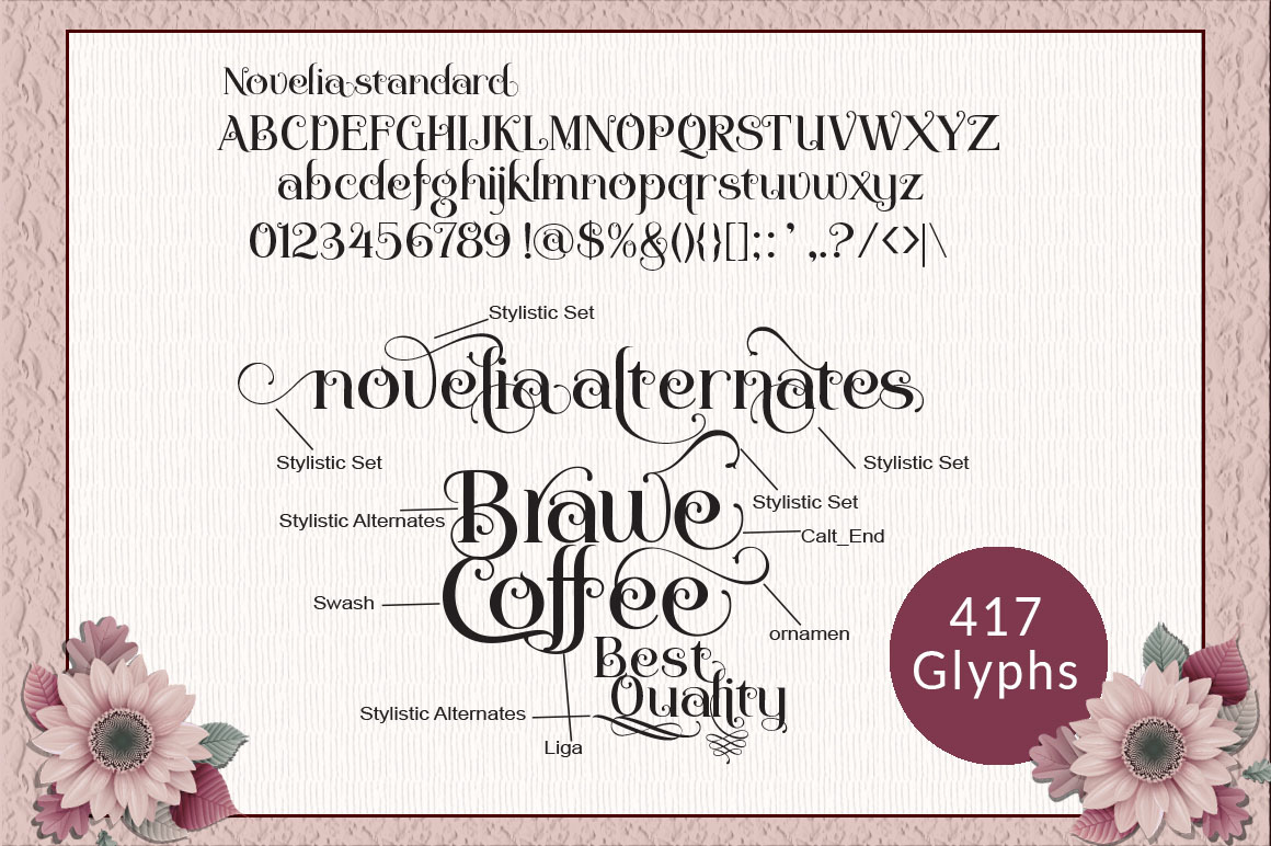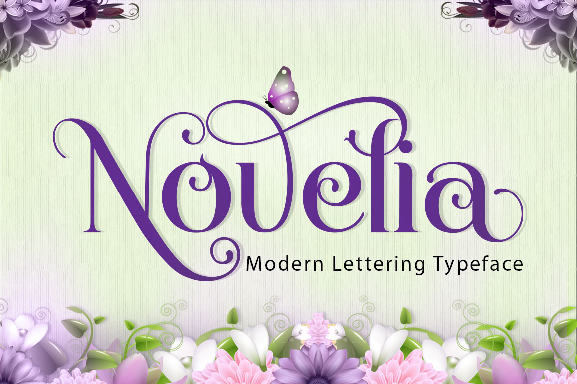 Novelia is a multi purpose font and ready to make a statement by adding elegant and unique flair to your next design project. Novelia can be used for various purposes such as posters, logos, t-shirt, signage, businnes card, magazines, book cover, wedding invitation, greeting cards etc…