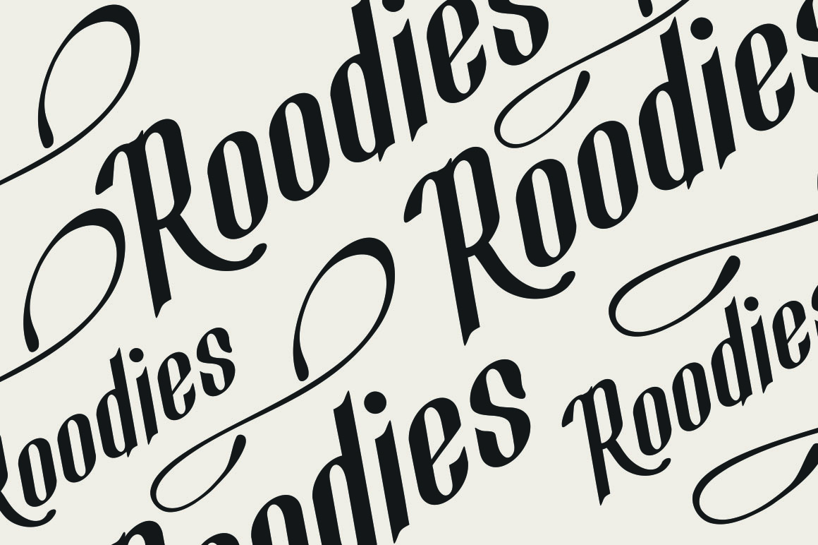 Roodies is a typeface inspired from old and vintage lettering. Suits best for vintage / classic designs, logo, signage, headline, etc. Available uppercase, lowercase, numerals, basic punctuations.