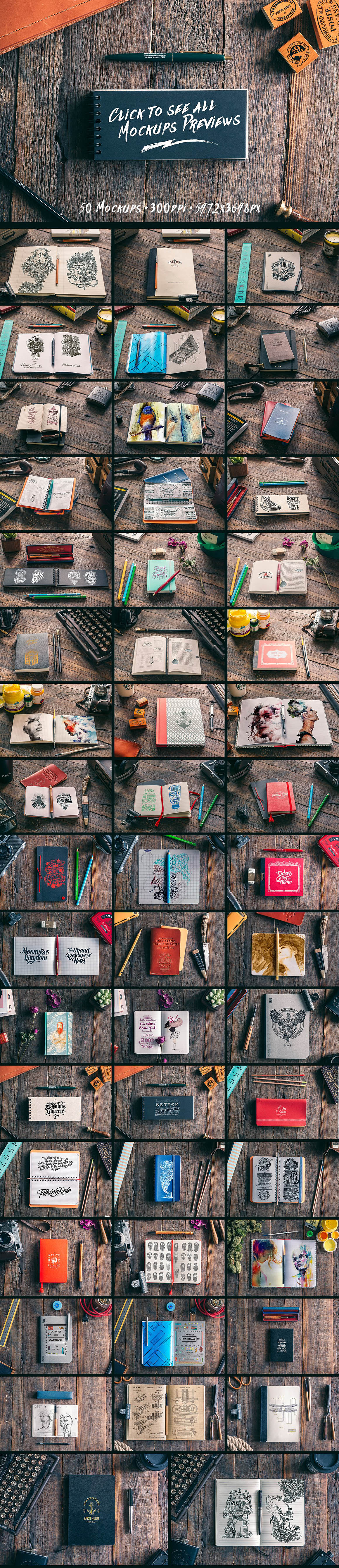 100 Awesome Notebooks in one bundle with different kinds of notebooks mockups! This is great for presenting your logos, sketches, notes, scrapbooks, doodles, drawings, art work, design wireframes, presentations, watercolours, photos or anything else. Each of 100 mockups are supplied with Smart Object for easy one-click replacement with your original designs.