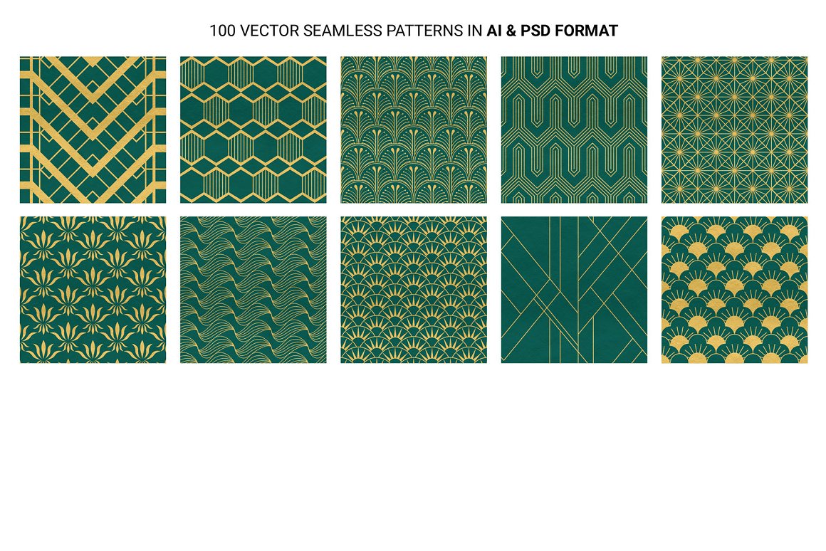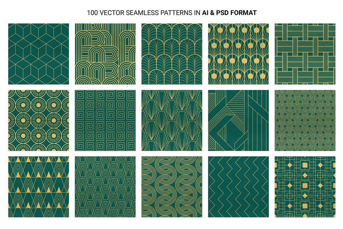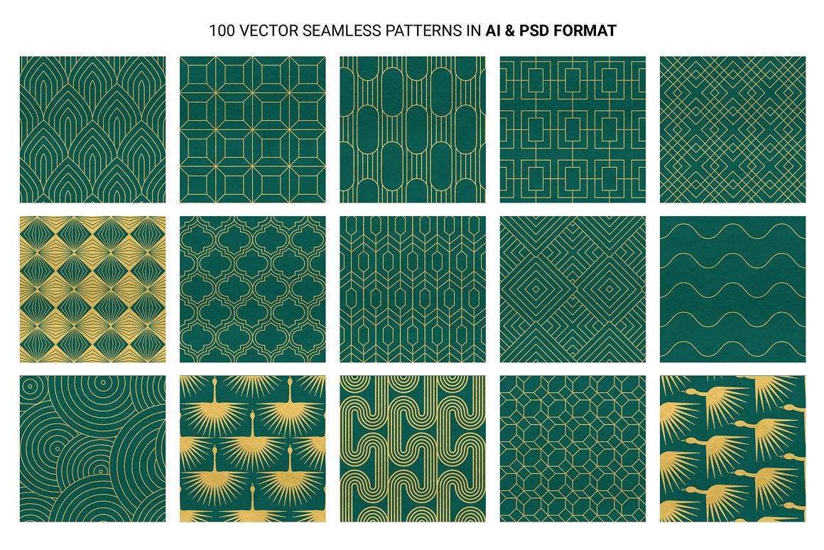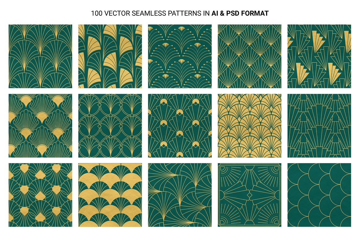 Not only are there 100 unique Art Deco patterns inside this download, we’ve also included some Art Deco borders and Art Deco corners to further jazz-age-up your work. All elements (patterns, borders & corner vectors) come in both Photoshop PSD & Illustrator AI formats, as well as in transparent PNG format, ensuring they can also be used in other image editing tools.