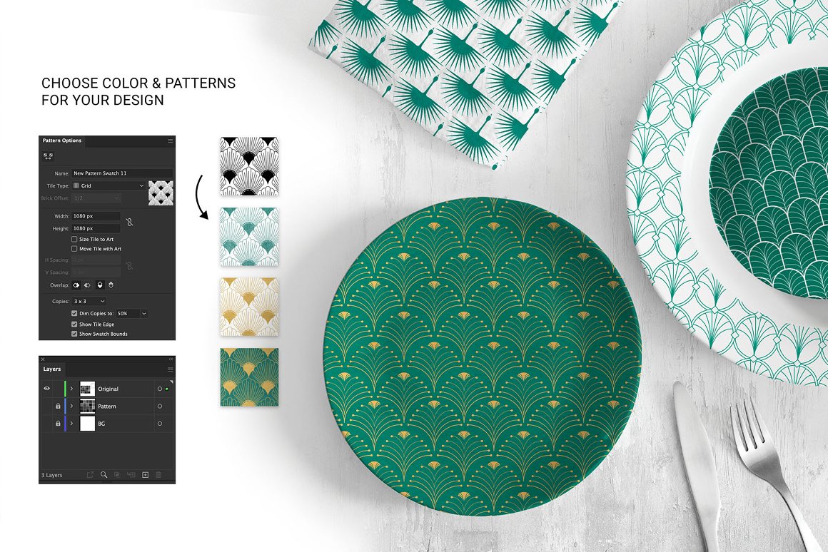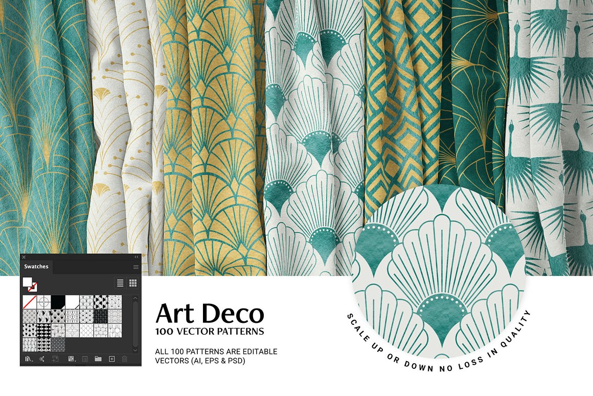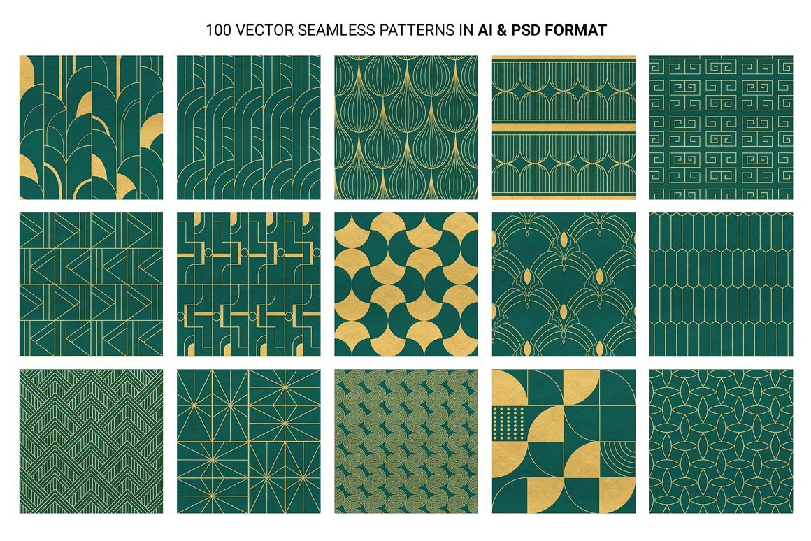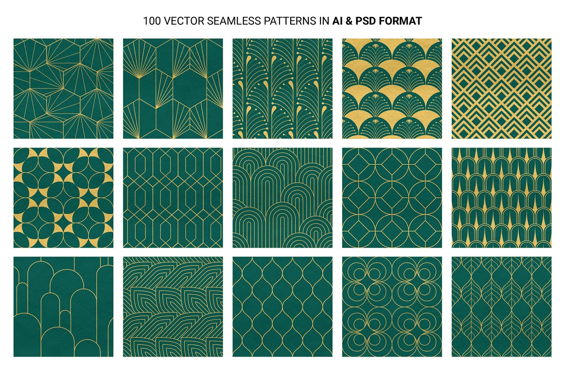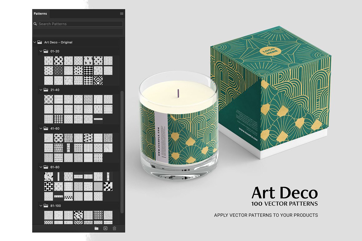 Not only are there 100 unique Art Deco patterns inside this download, we’ve also included some Art Deco borders and Art Deco corners to further jazz-age-up your work. All elements (patterns, borders & corner vectors) come in both Photoshop PSD & Illustrator AI formats, as well as in transparent PNG format, ensuring they can also be used in other image editing tools.