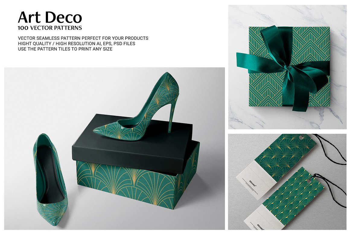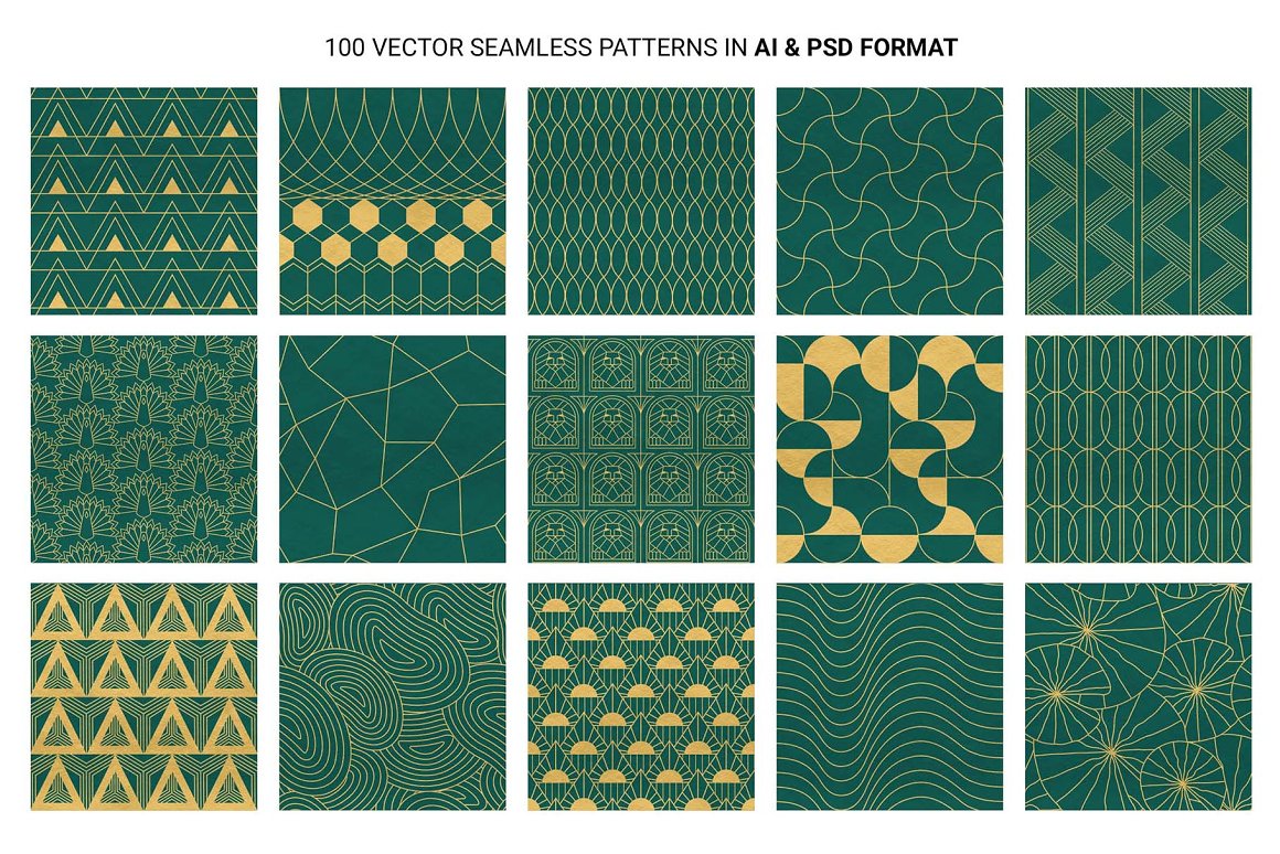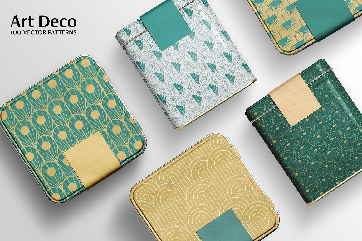 Glamorous, glitzy and dazzlingly lavish. This collection of 100 Art Deco Patterns from Designer Candies brings your projects the splash of elegance & luxury they’ve been looking for. Available for both Photoshop and Illustrator, these exquisite Art Deco Patterns are well-suited to a range of design projects. In particular, we think these patterns will be ideal for fabric printing, event posters, menus and of course product packaging. The sleek Art Deco style of these patterns is truly unmissable,and further accentuated by the use of minimal lines, intricate details and subtle gold-foil textures. Enhancing this pack further still, we’ve also thrown in some bonuses that even The Great Gatsby himself would be impressed to see…