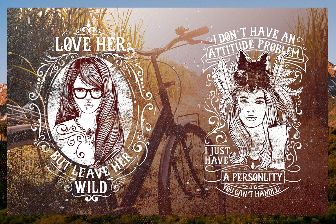 If you’re looking to make your own T-shirts, this is just the bundle you need! It includes 100 incredible designs that you can easily scale to whatever size you need, from a very wide variety of themes, such as: boho style, adventures, animals, beards and moustaches, cars and bikes, Christian t-shirts, gym, games, motivational, music, nature, nurses, photographer, sport, urban, wild west and more.