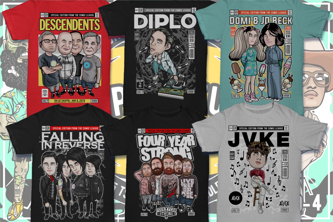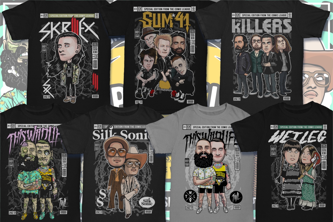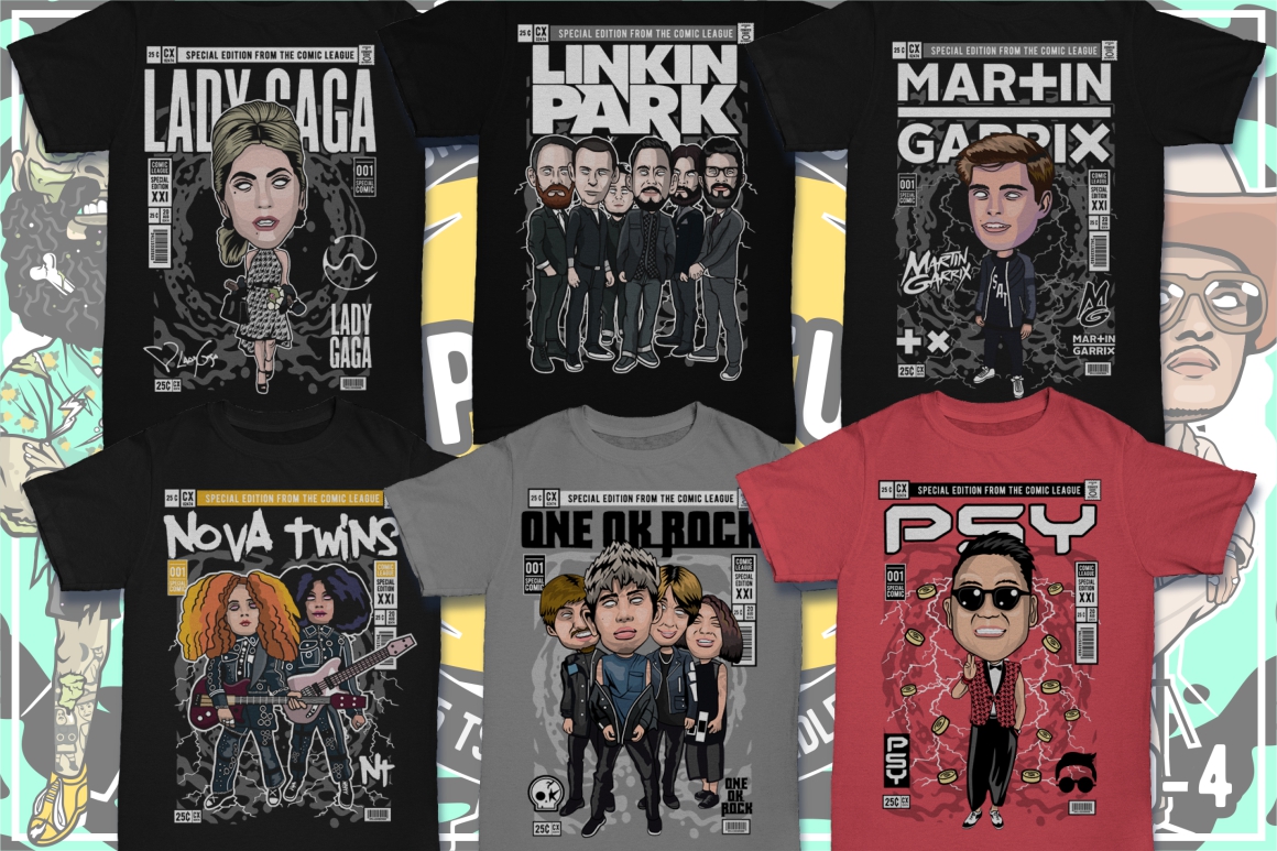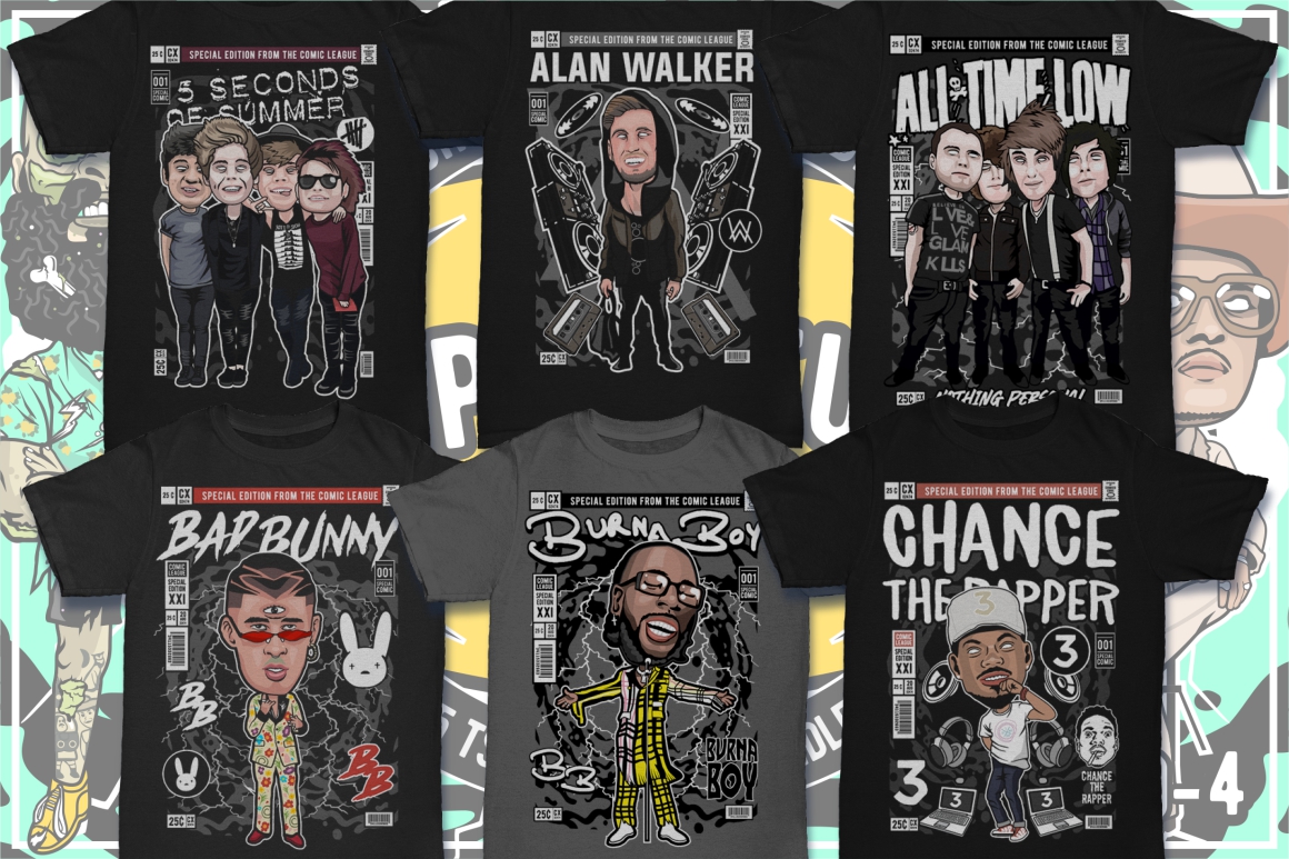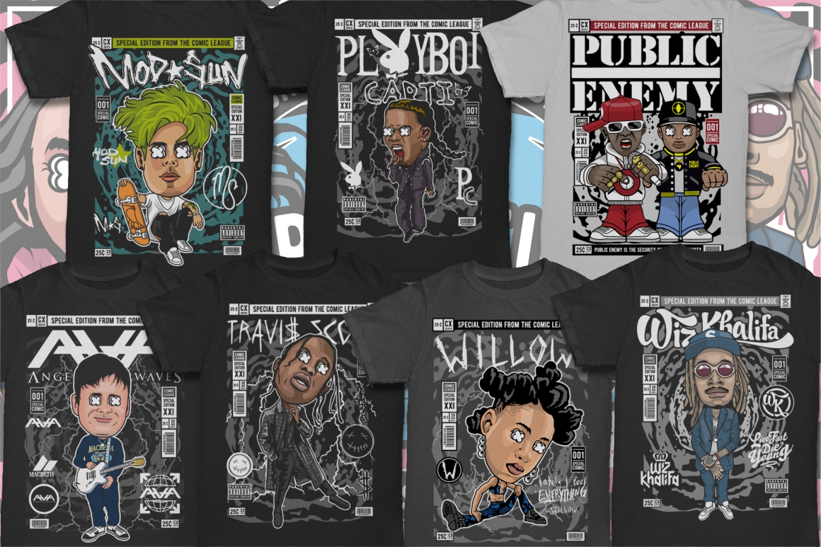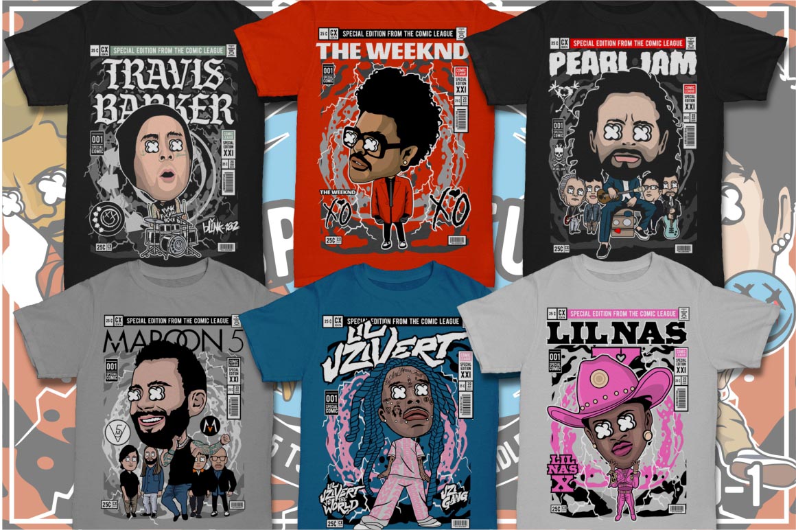 - Dan Roach interpretation of 100 famous cartoon & pop culture characters (it’s author’s own interpretation – author’s selling these designs on top T-shirt design websites)