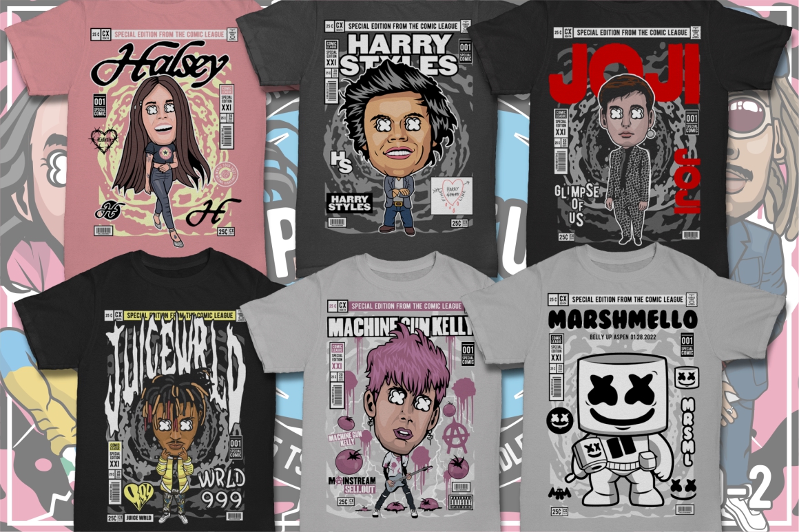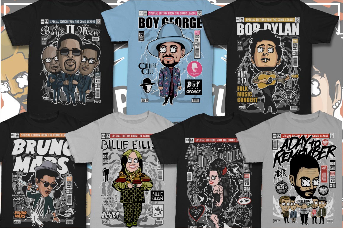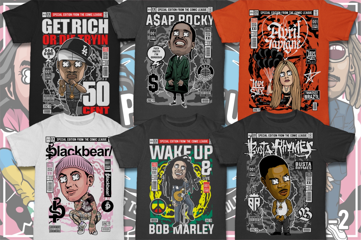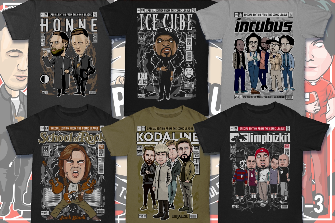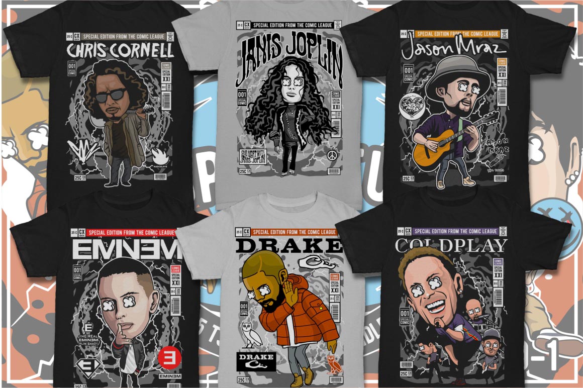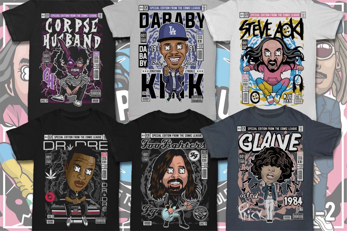 If you need something new in your vector graphics library or some cool illustrations for your new project we have a unique vector illustrations bundle for you 🙂 Already 10th similar bundle with Pop culture cartoon characters from Dan Roach. This time with 100 brand new vector designs or illustrations with POP culture style. You can create unique & funny t-shirt designs, stickers, badges, posters, invitations or logo designs.
