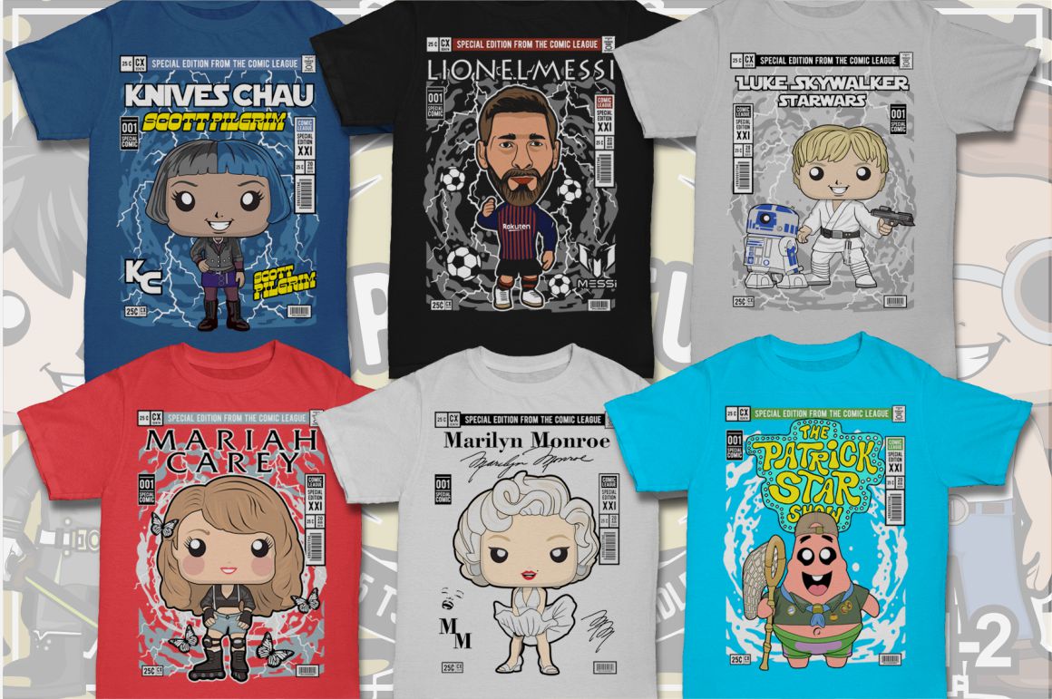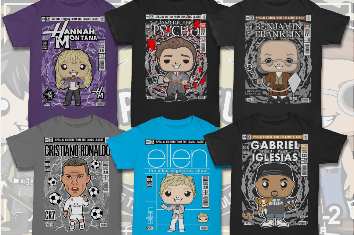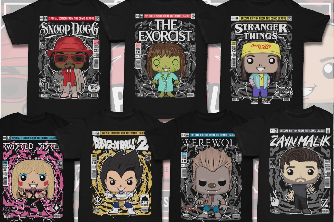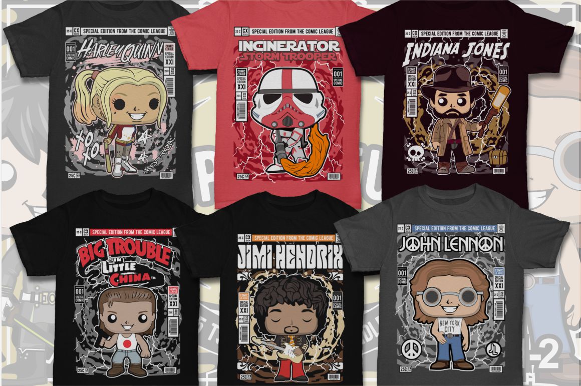 If you need something new in your vector graphics library or some cool illustrations for your new project we have a unique vector illustrations bundle for you 🙂 Already 11th similar bundle with Pop culture cartoon characters from Dan Roach. This time with 100 brand new vector designs or illustrations with POP culture style. You can create unique & funny t-shirt designs, stickers, badges, posters, invitations or logo designs.
