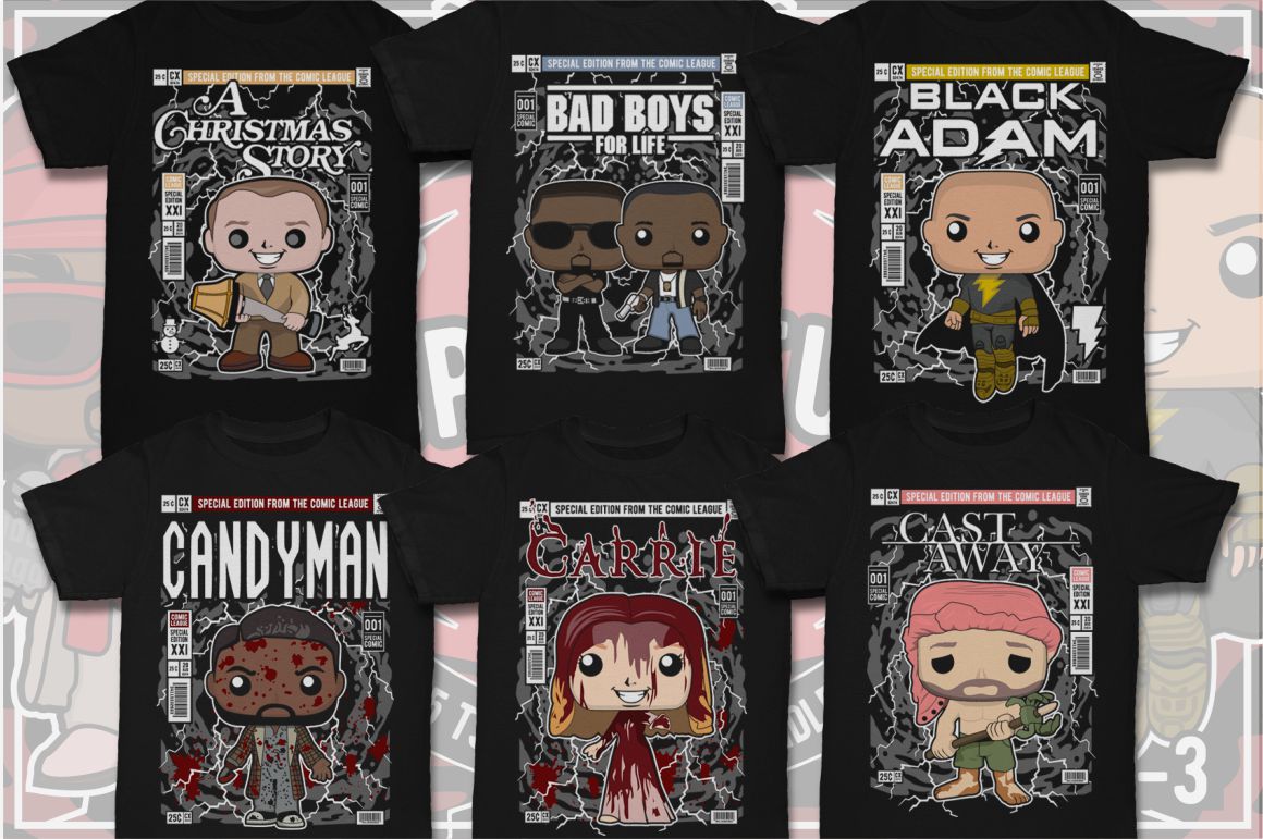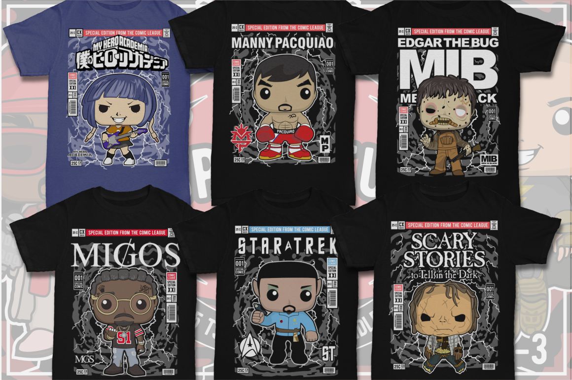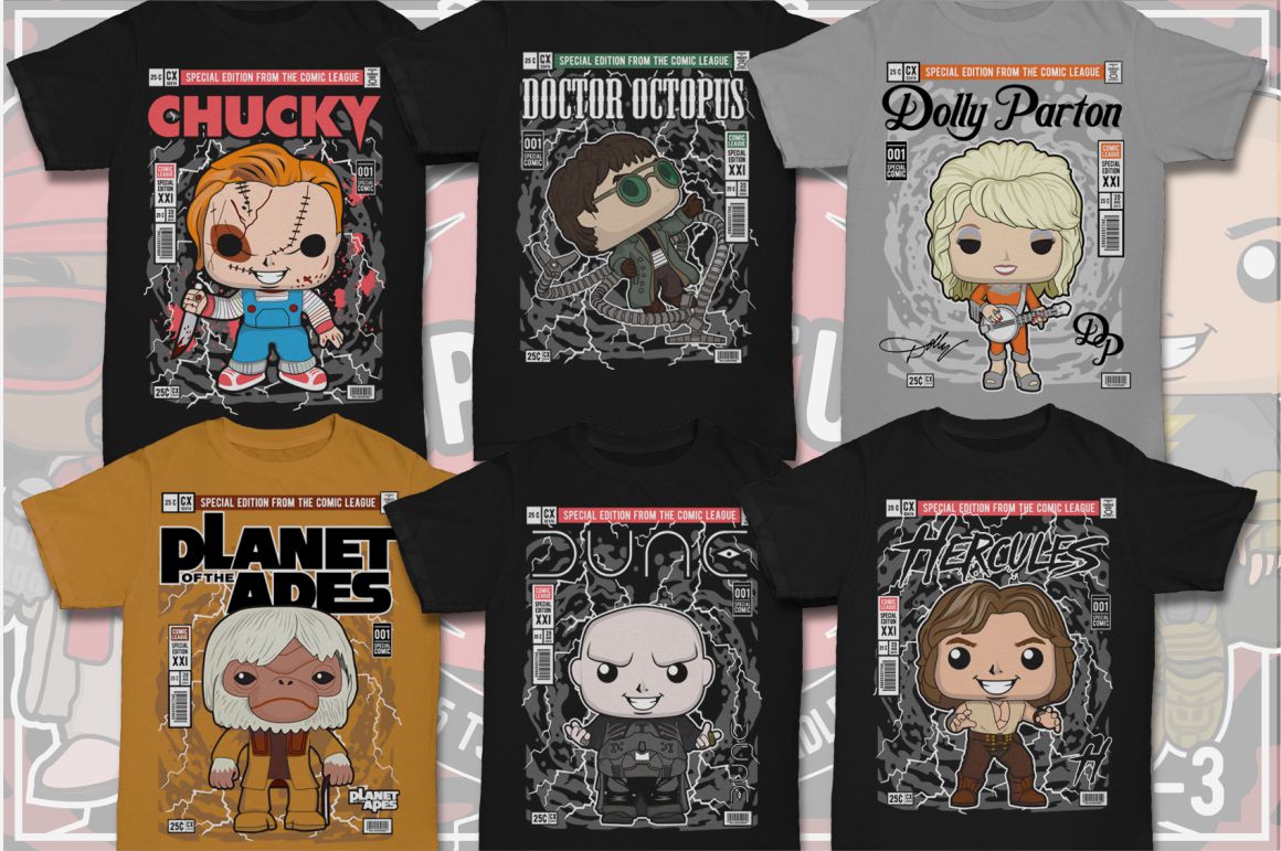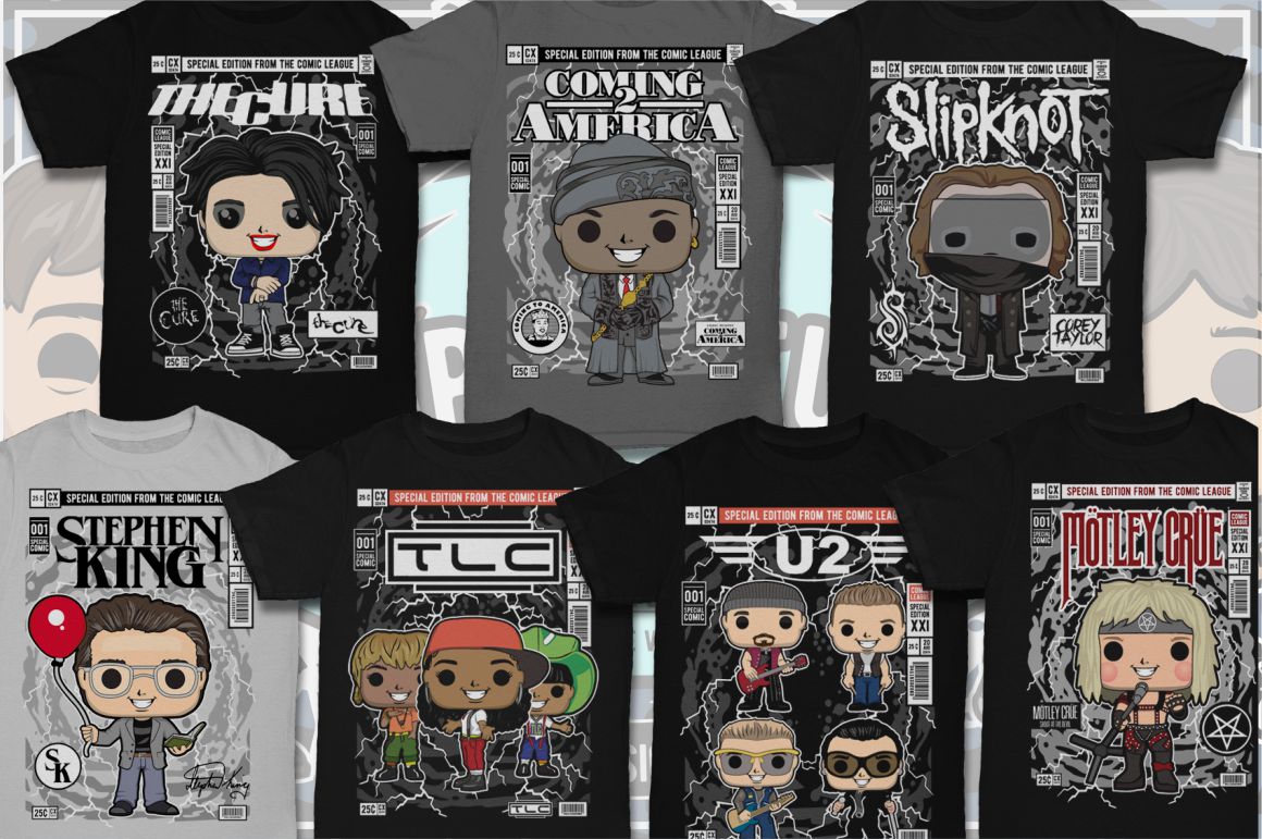 If you need something new in your vector graphics library or some cool illustrations for your new project we have a unique vector illustrations bundle for you 🙂 Already 11th similar bundle with Pop culture cartoon characters from Dan Roach. This time with 100 brand new vector designs or illustrations with POP culture style. You can create unique & funny t-shirt designs, stickers, badges, posters, invitations or logo designs.