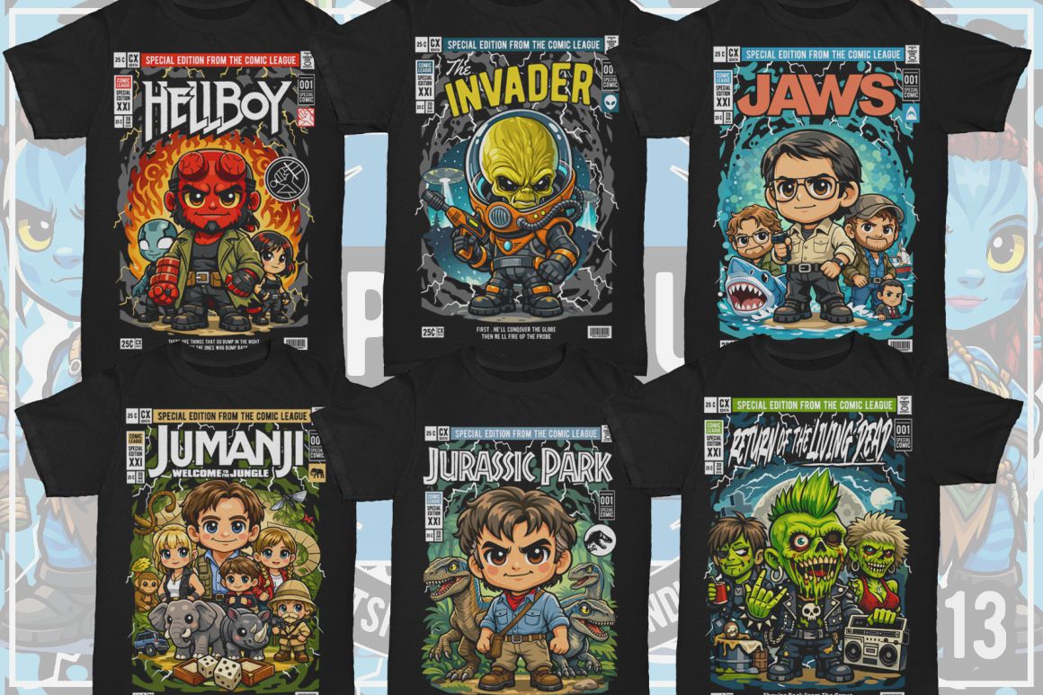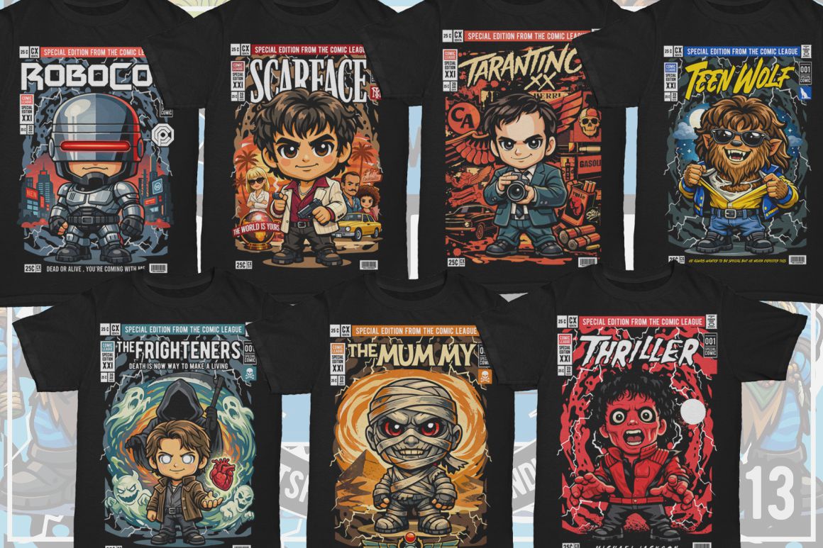 If you need something new in your vector graphics library or some cool illustrations for your new project we have a unique vector illustrations bundle for you 🙂 Already 13th similar bundle with Pop culture cartoon characters from Dan Roach. This time with 100 brand new vector designs or illustrations with POP culture style. You can create unique & funny t-shirt designs, stickers, badges, posters, invitations or logo designs.