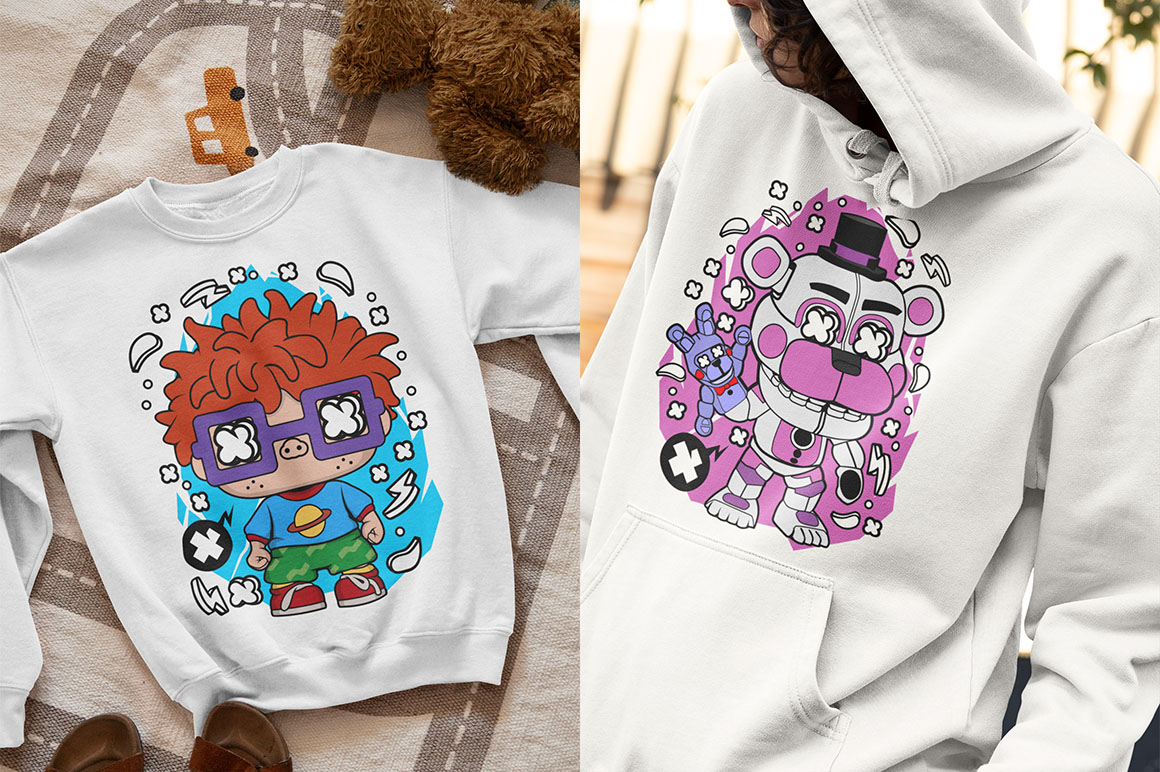 If you need something new in your vector graphics library or some cool illustrations for your new project we have a unique vector illustrations bundle for you 🙂 Already 4th similar bundle with Pop culture cartoon characters from Dan Roach. This time with 100 brand new vector designs or illustrations with POP culture style. You can create unique t-shirt designs, stickers, badges, posters, invitations or logo designs.