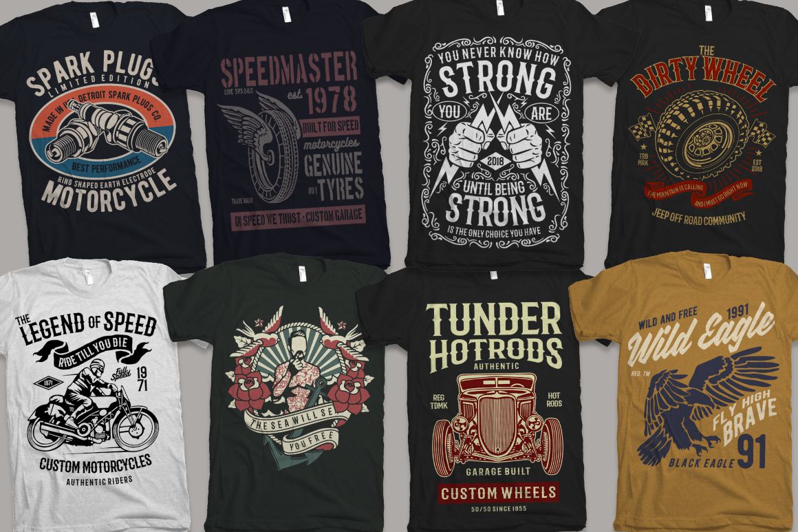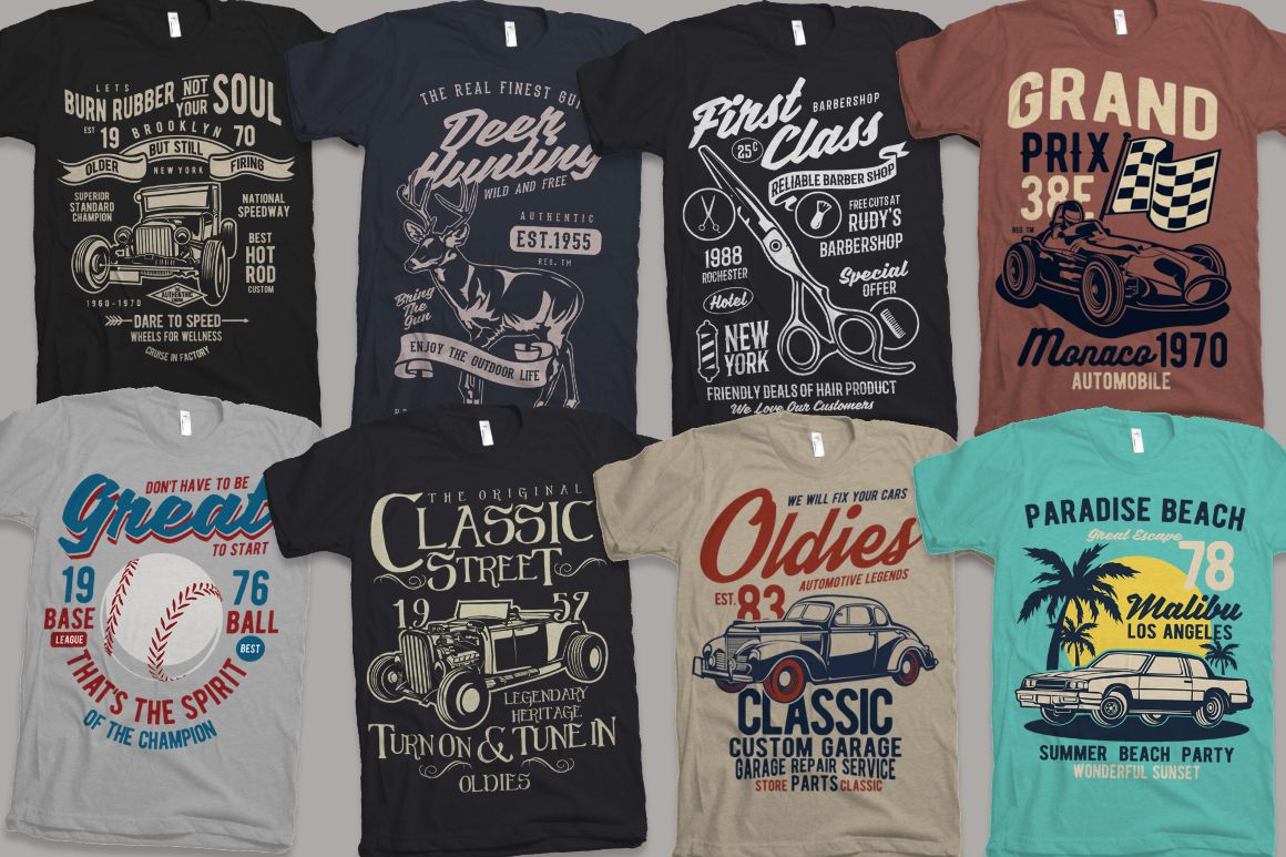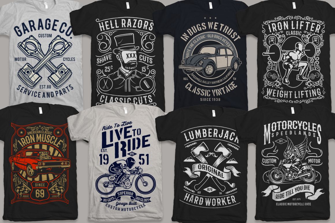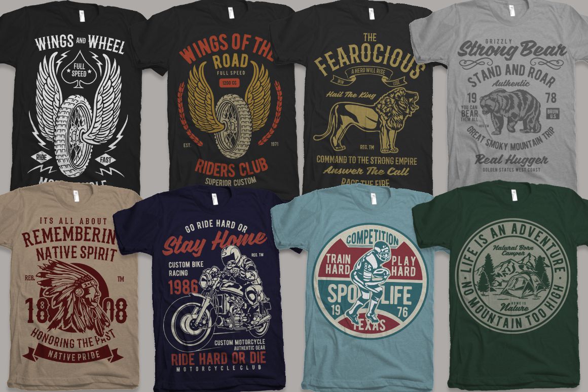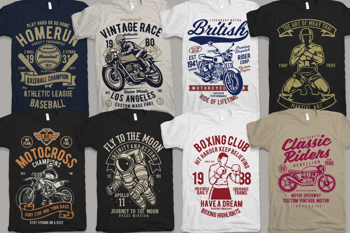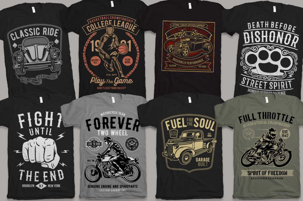 - 100 high quality t-shirt and merchandise graphics in various categories