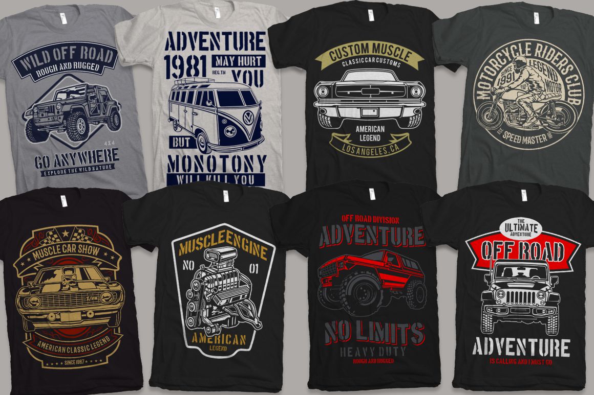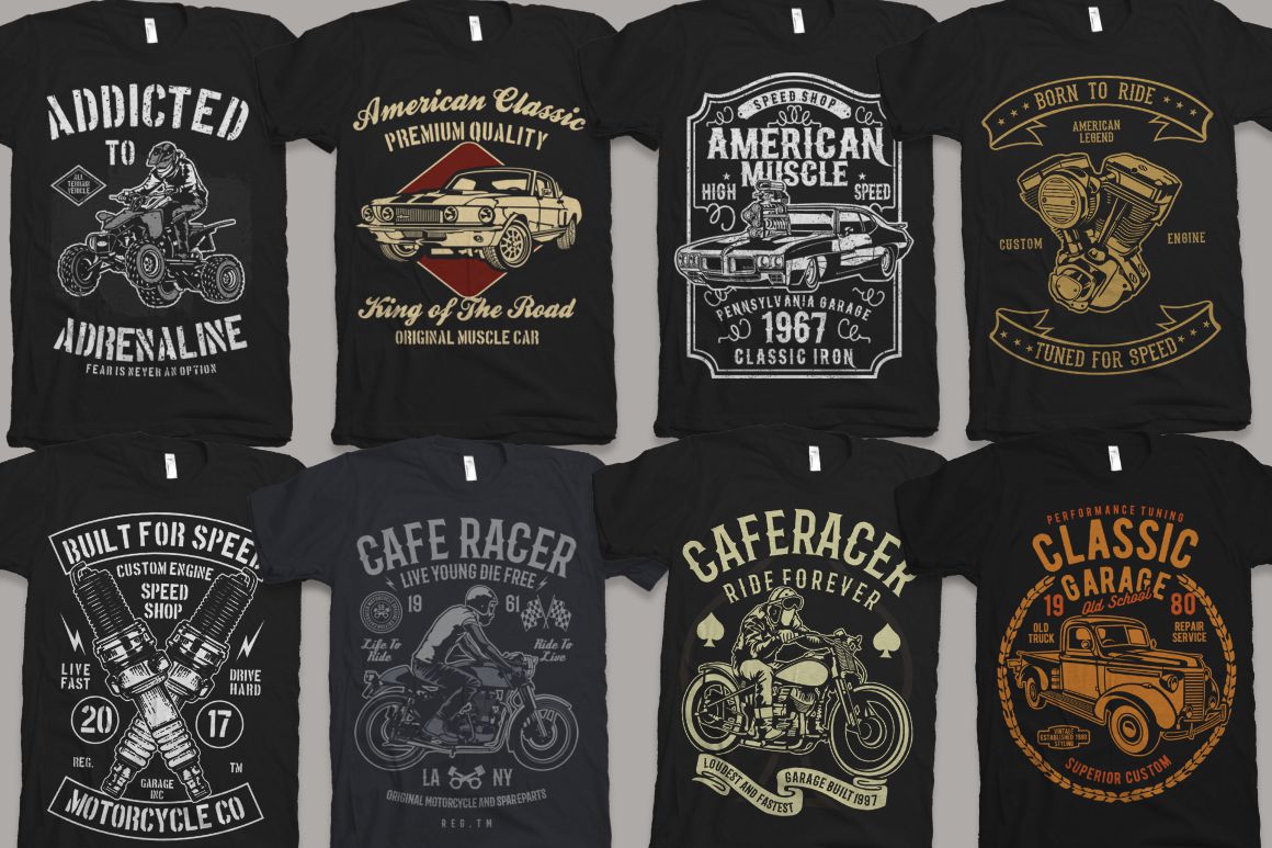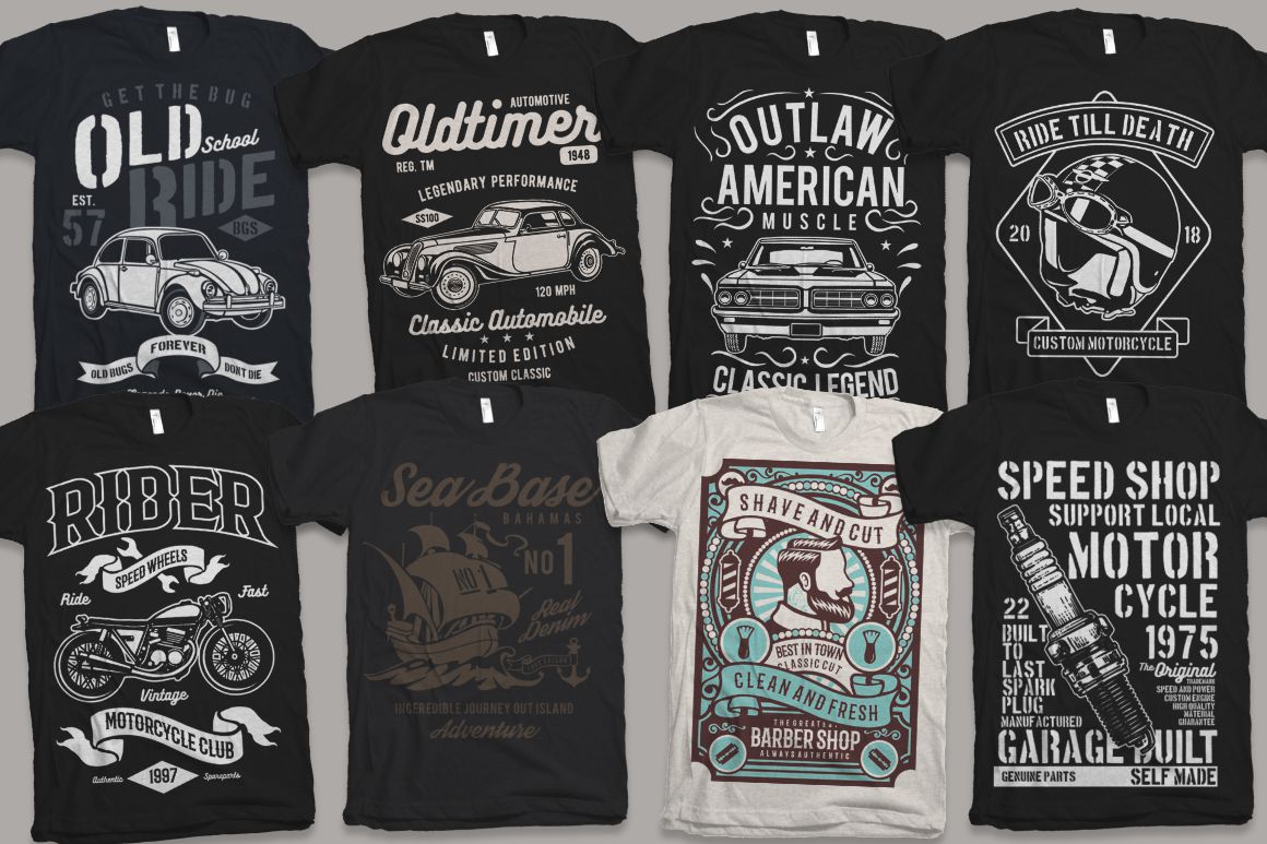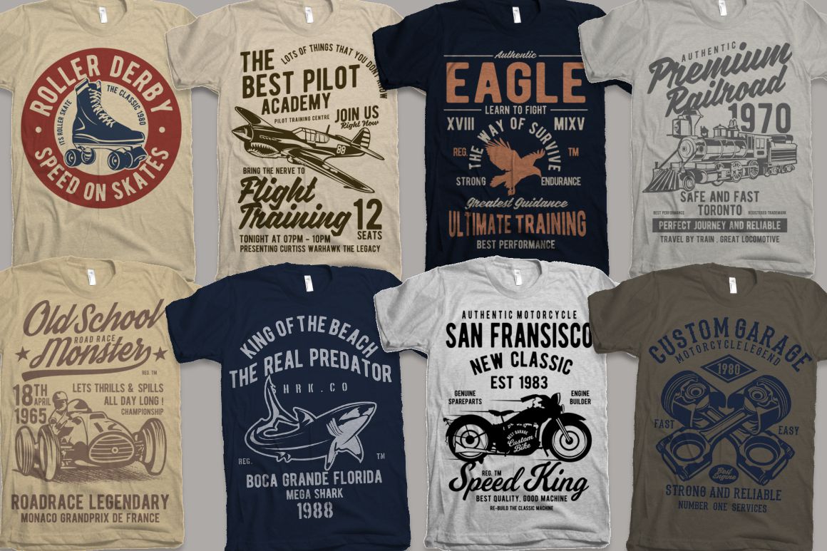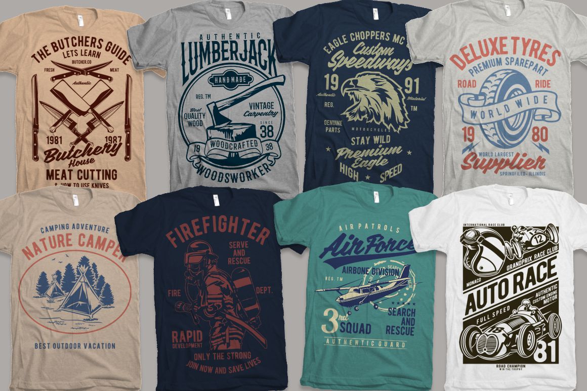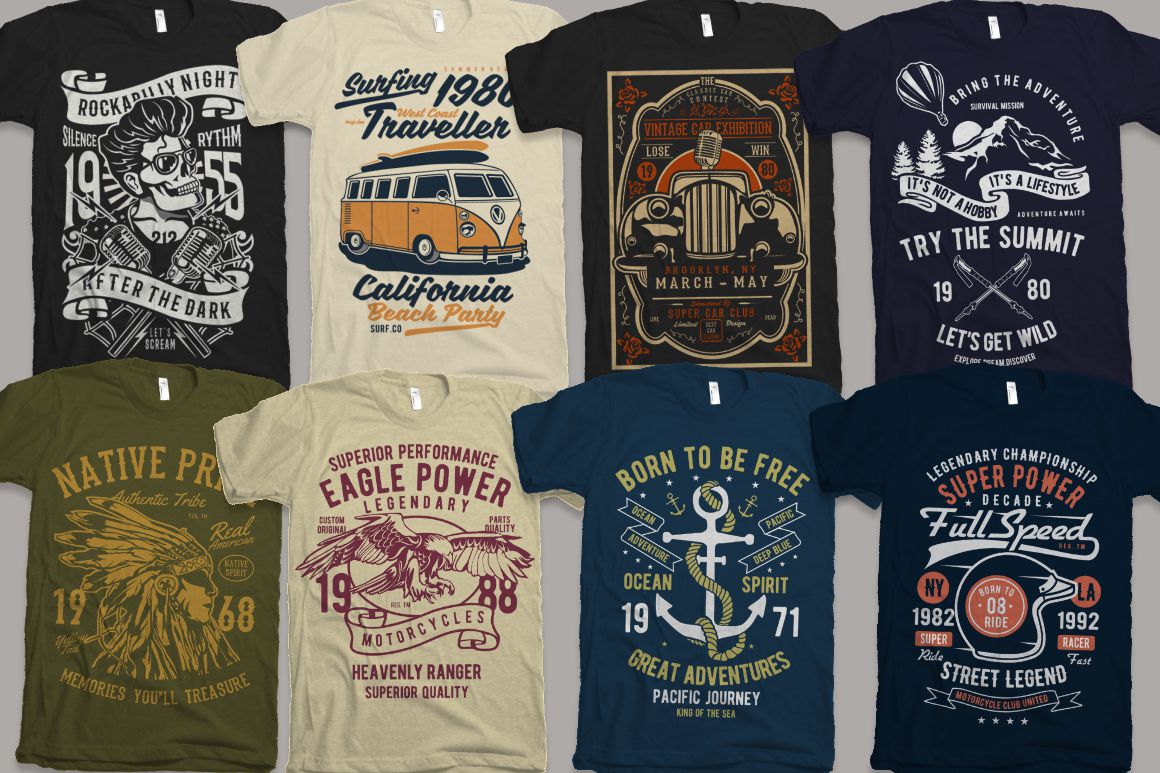 - 100 high quality t-shirt and merchandise graphics in various categories