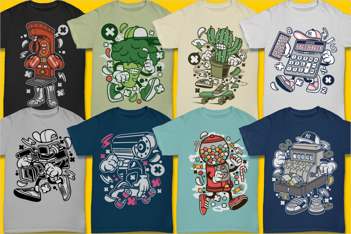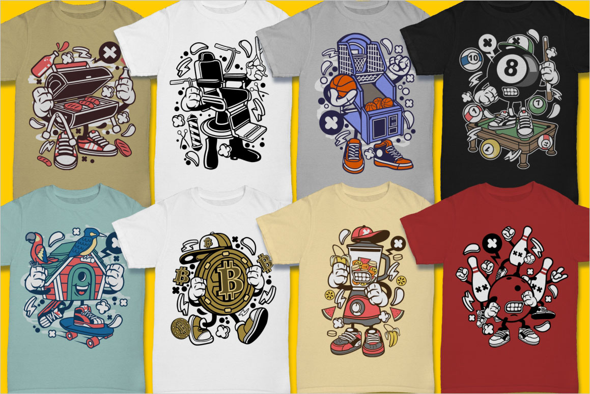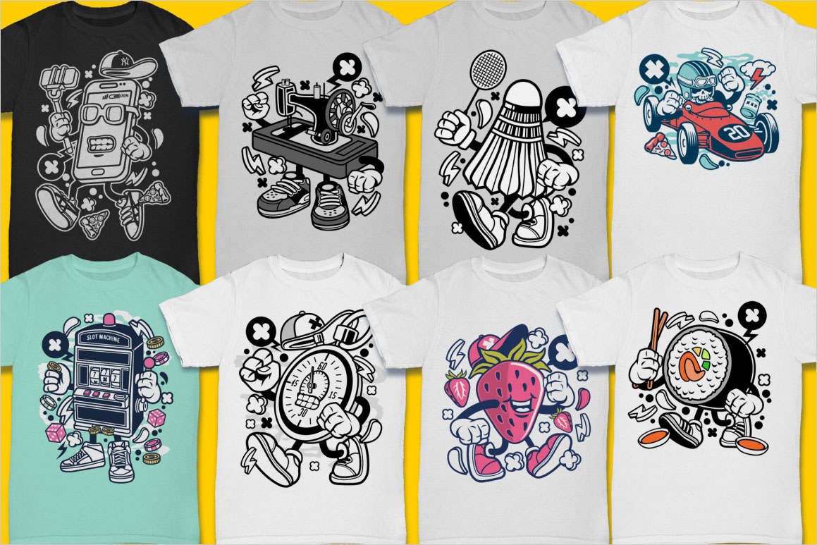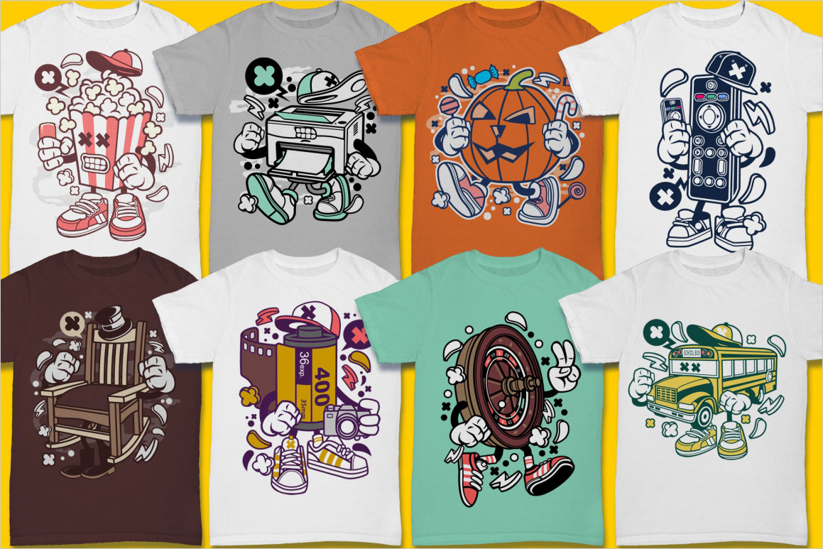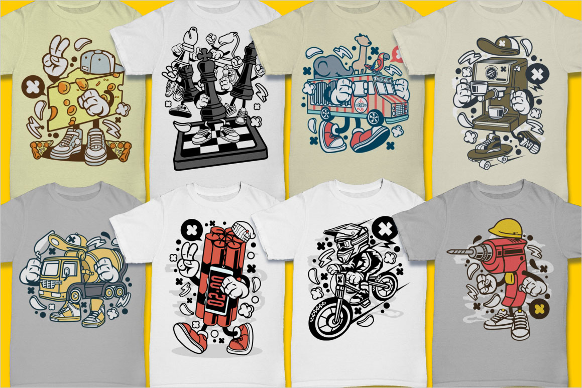 If you need something new in your vector graphics library or some cool illustrations for your new project we have a unique vector illustrations bundle for you 🙂 Already 3rd similar bundle from Dan Roach. This time with 100 brand new vector cartoon illustrations. You can create unique t-shirt designs, posters, invitations or logo designs.