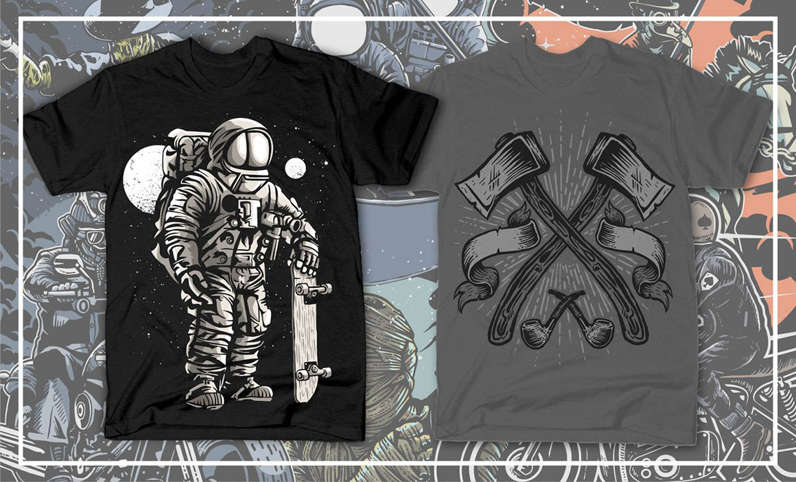 If you need something new in your vector graphics library or some cool illustrations for your new project we have a unique vector illustrations bundle for you 🙂 With 100 unique style vector designs or illustrations you can create creative t-shirt designs, posters, stickers, invitations or logo designs.