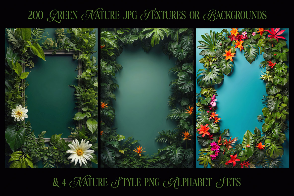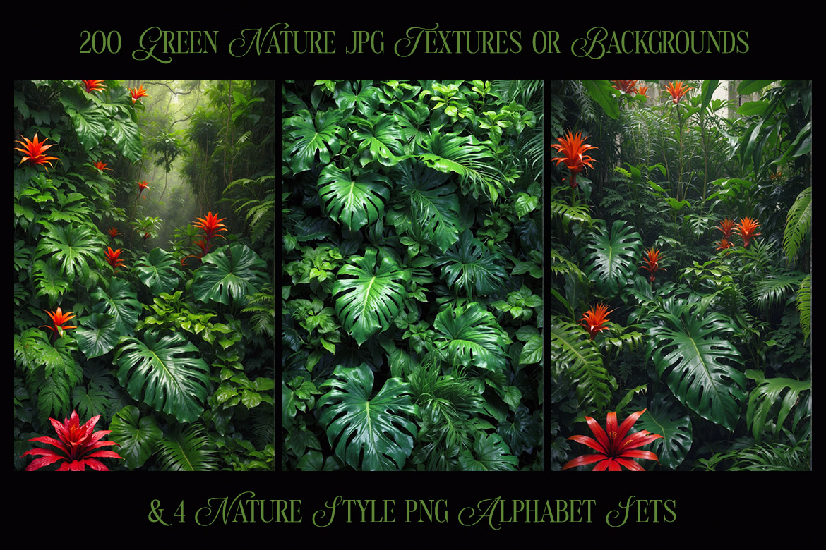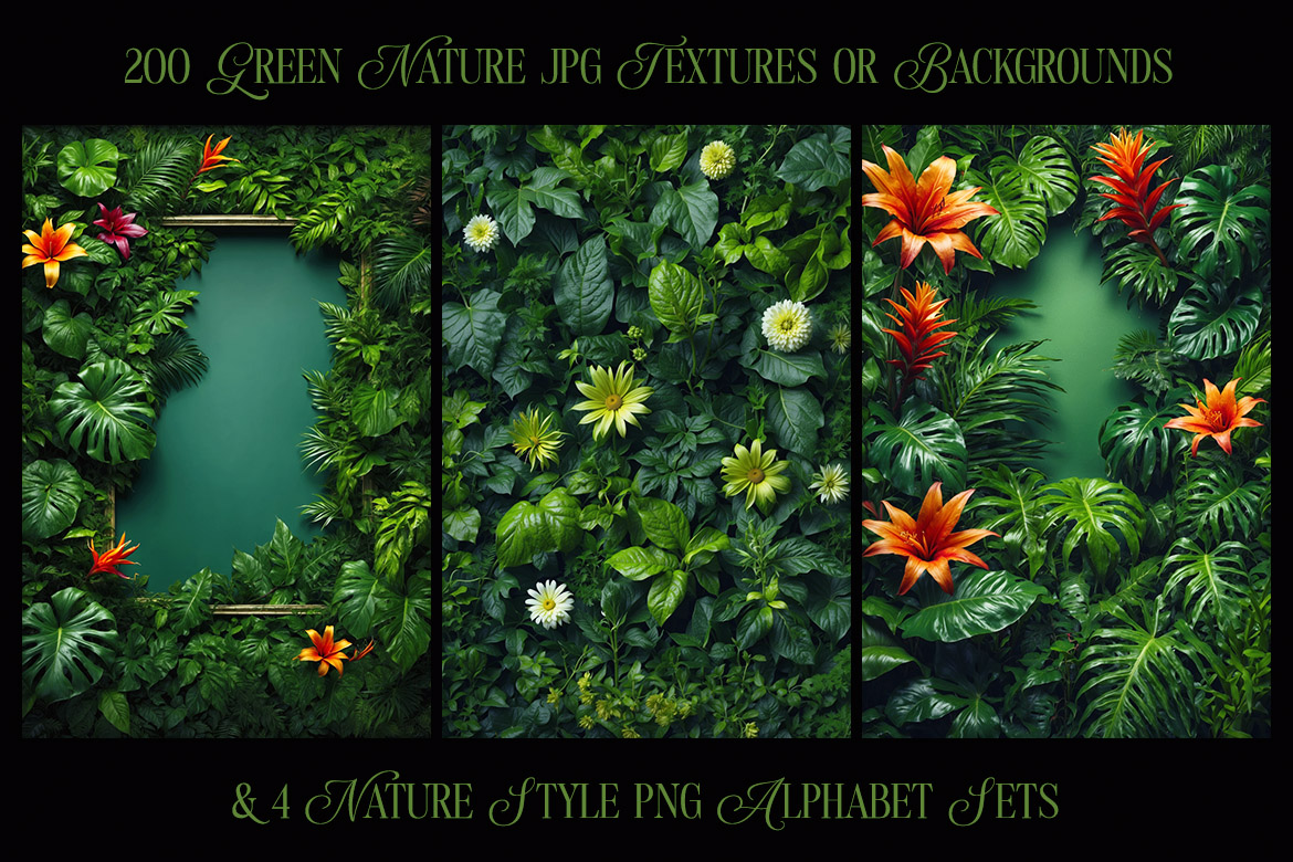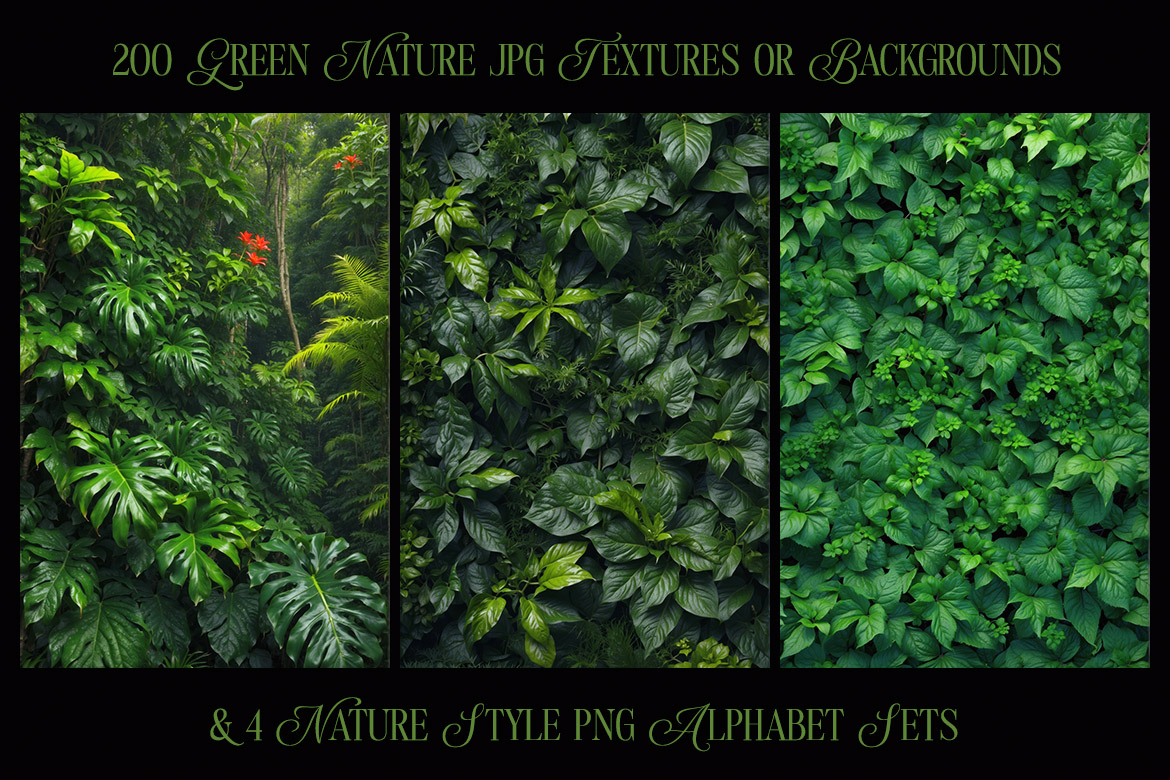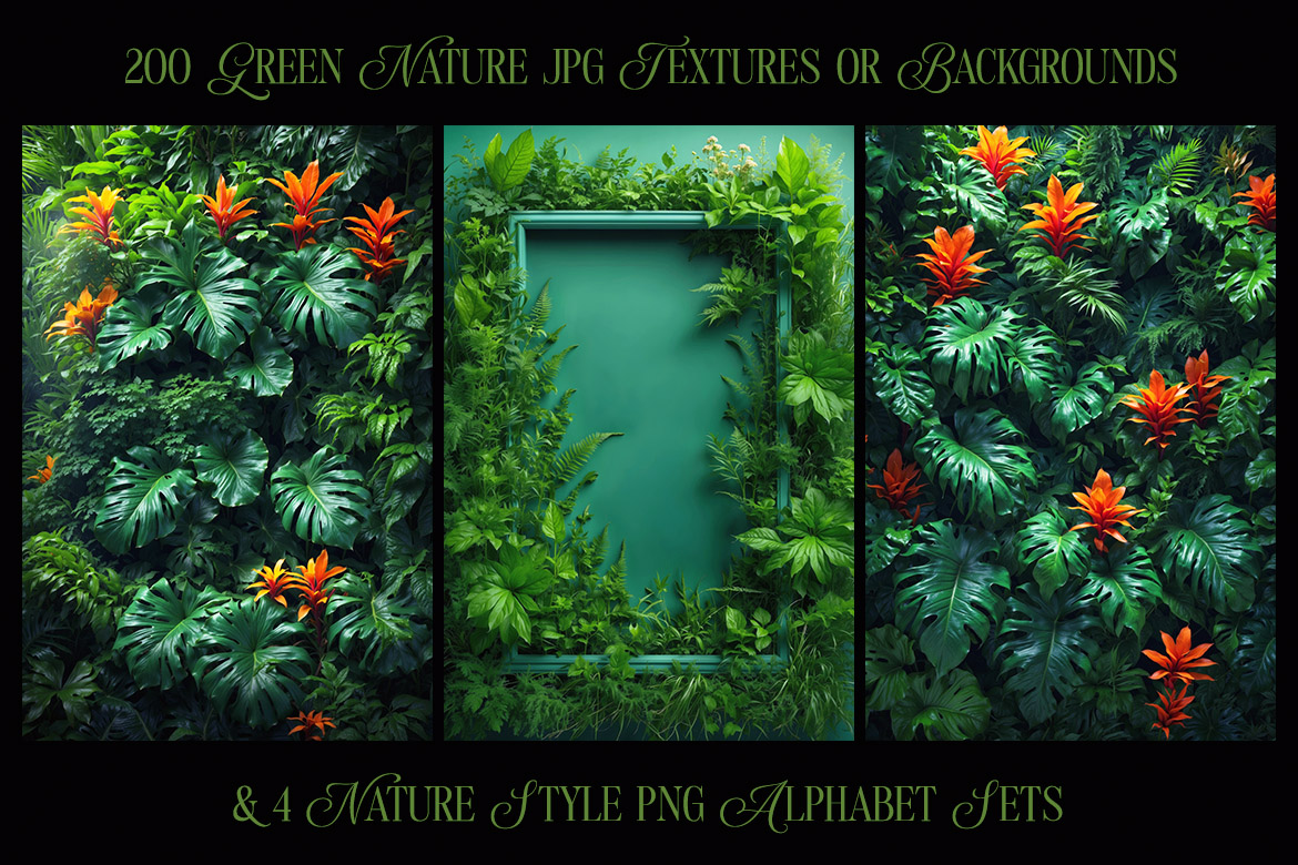 - 4 nature style PNG alphabet sets – All letters from A – Z (CAPS and small letters) & numbers + special characters (3000 x 3000 pix)