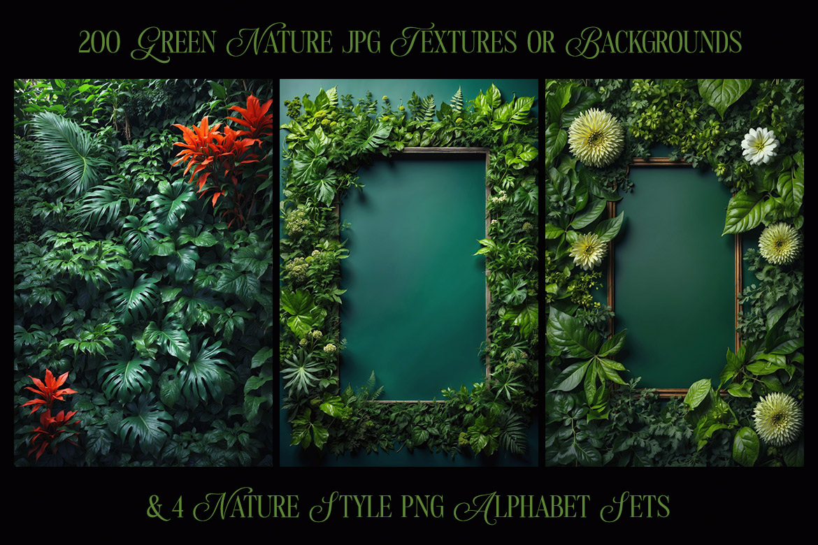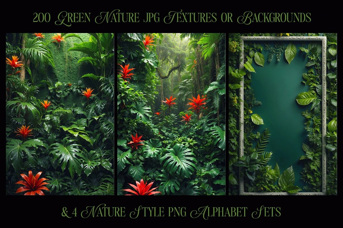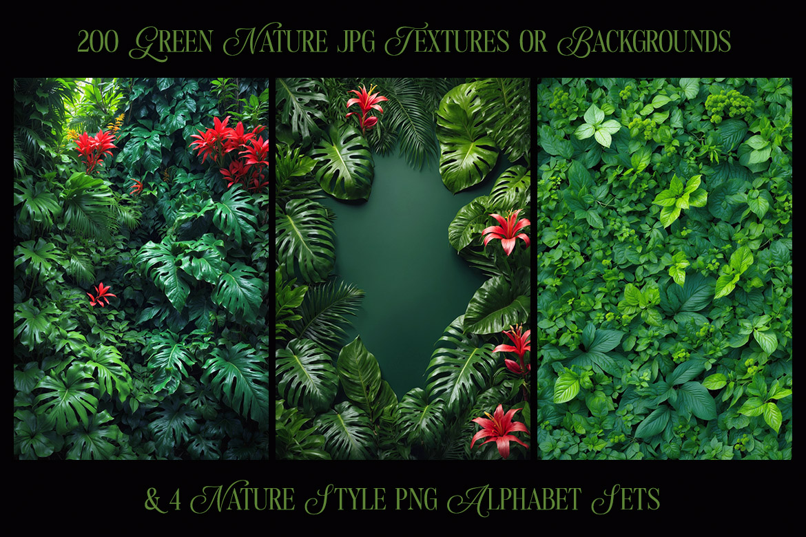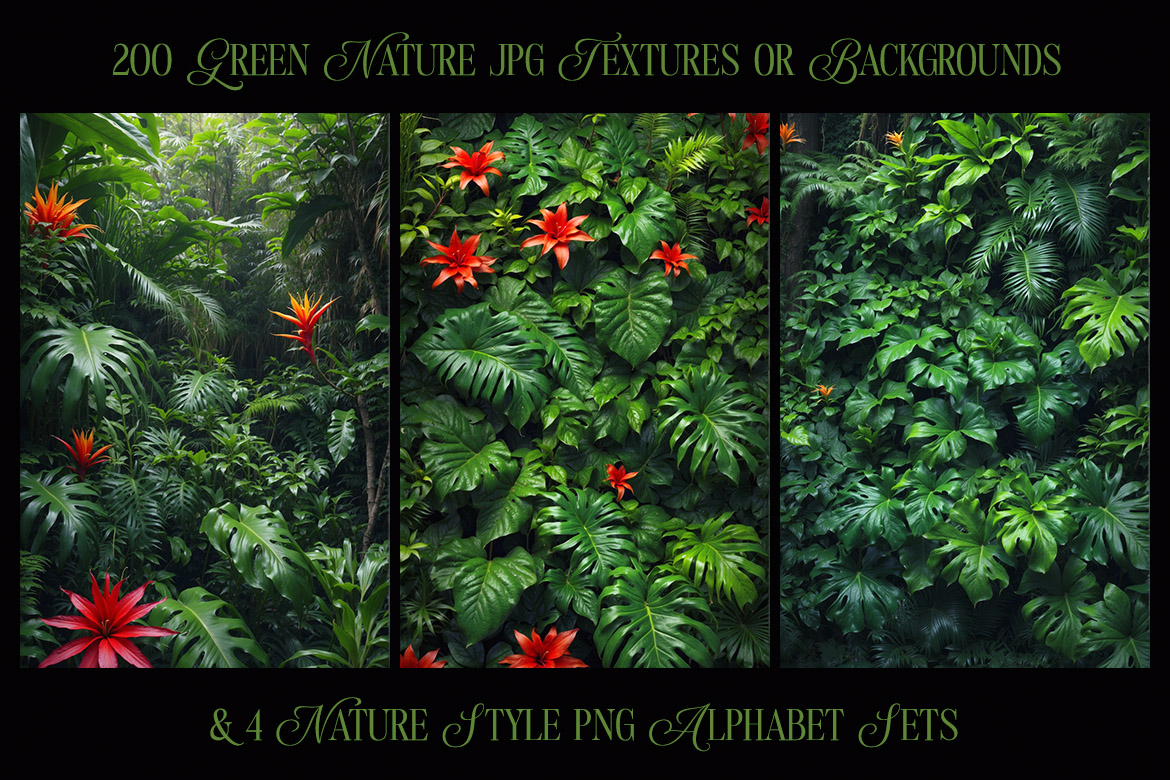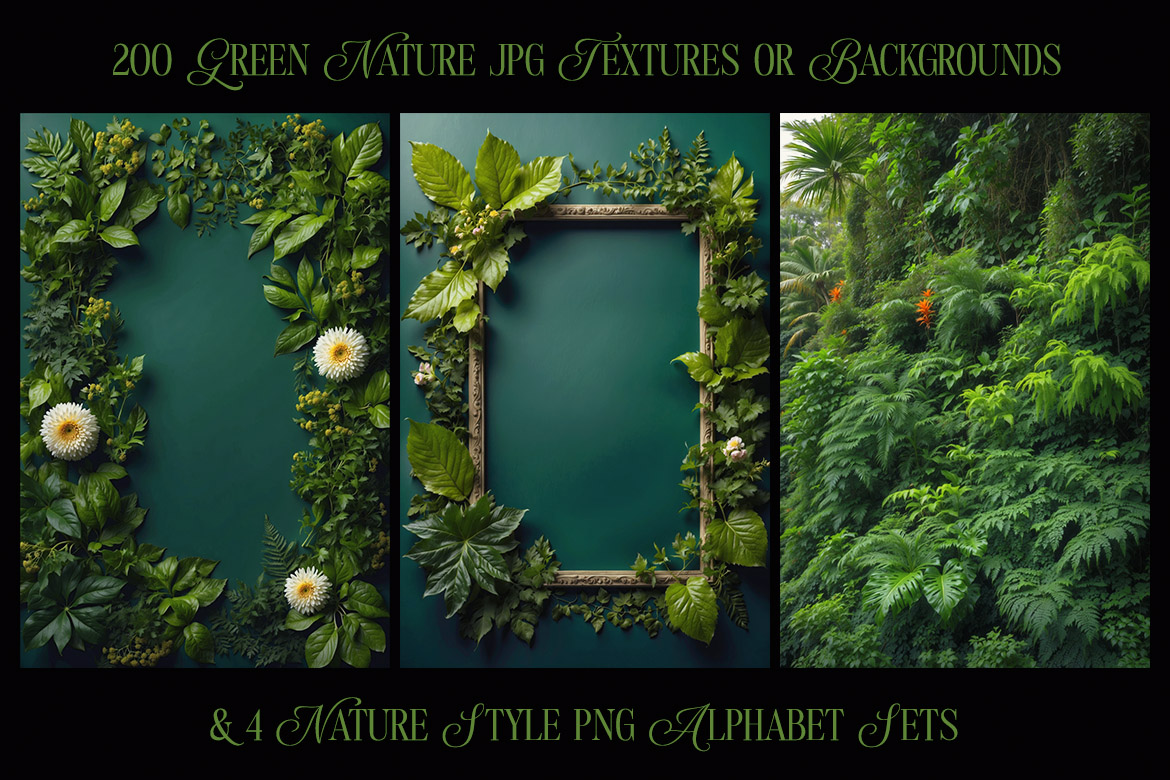 - 4 nature style PNG alphabet sets – All letters from A – Z (CAPS and small letters) & numbers + special characters (3000 x 3000 pix)