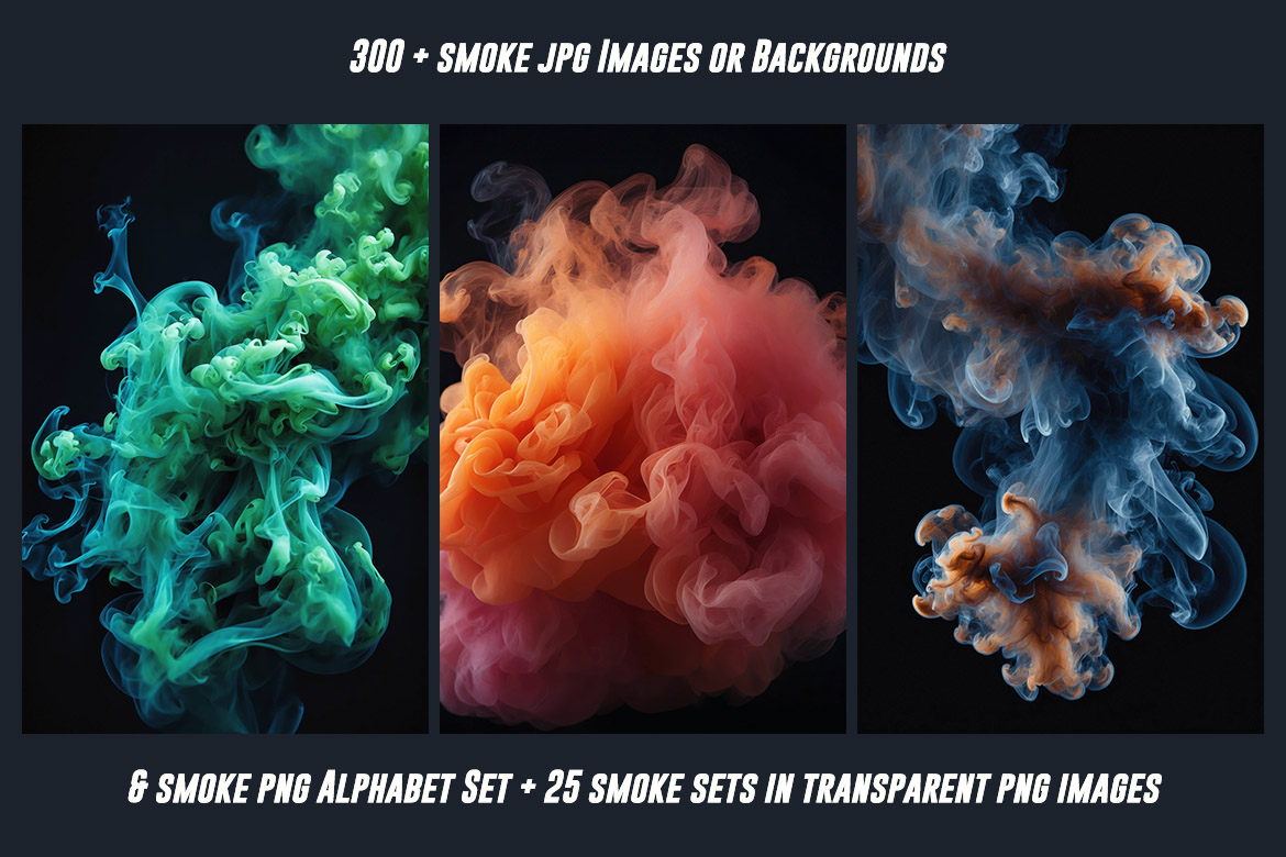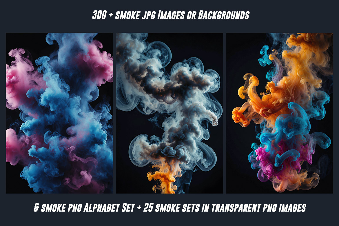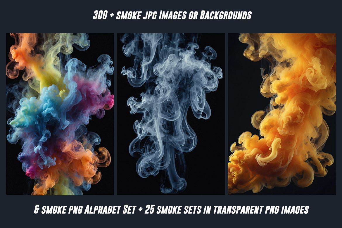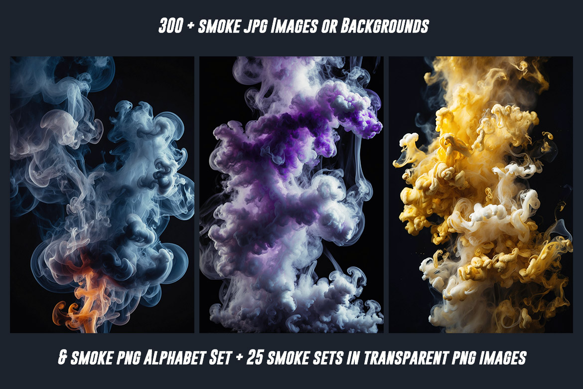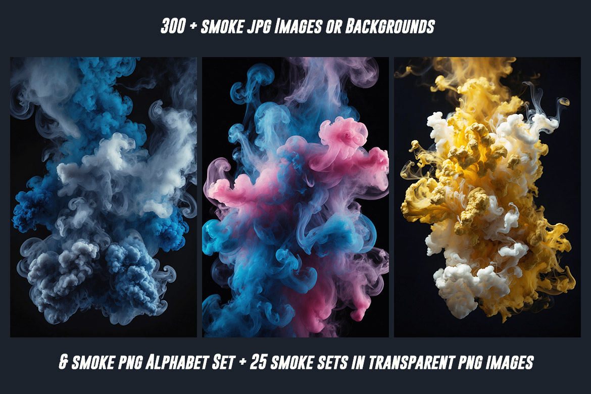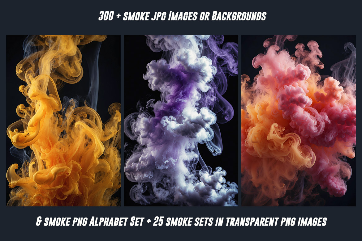 - smoke PNG alphabet set in 3 color versions – All letters from A – Z & numbers + special characters (3000 x 3000 pix)