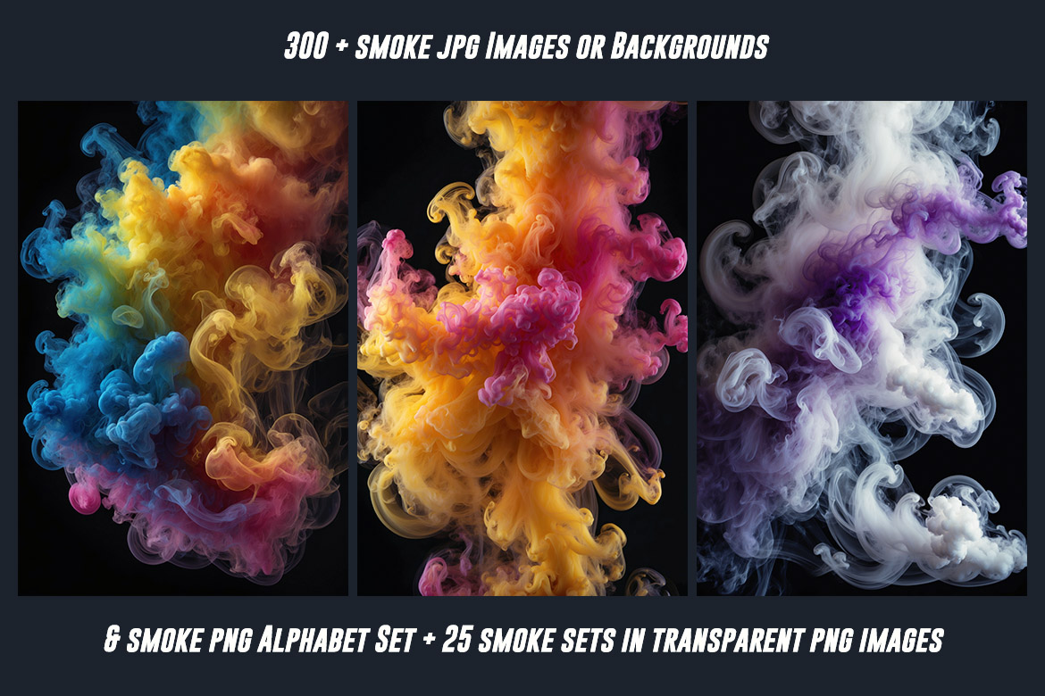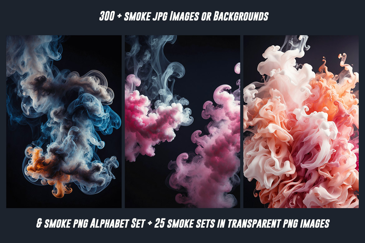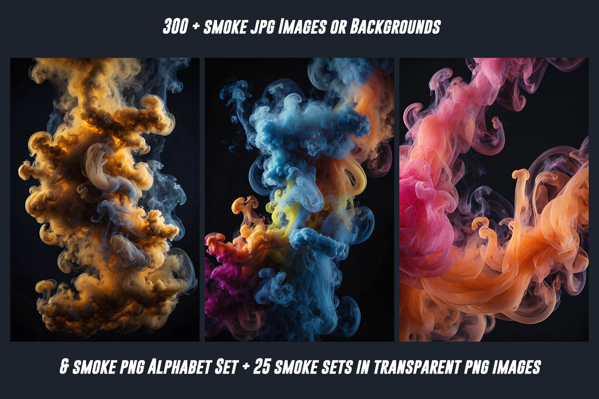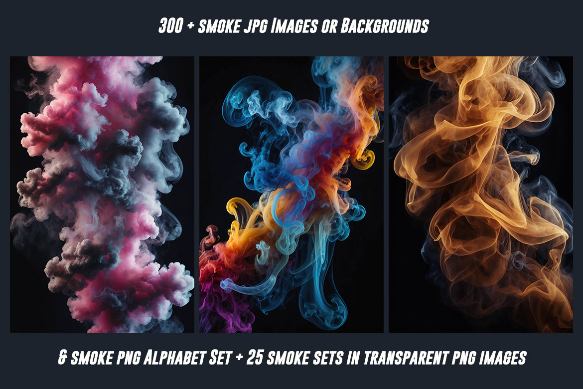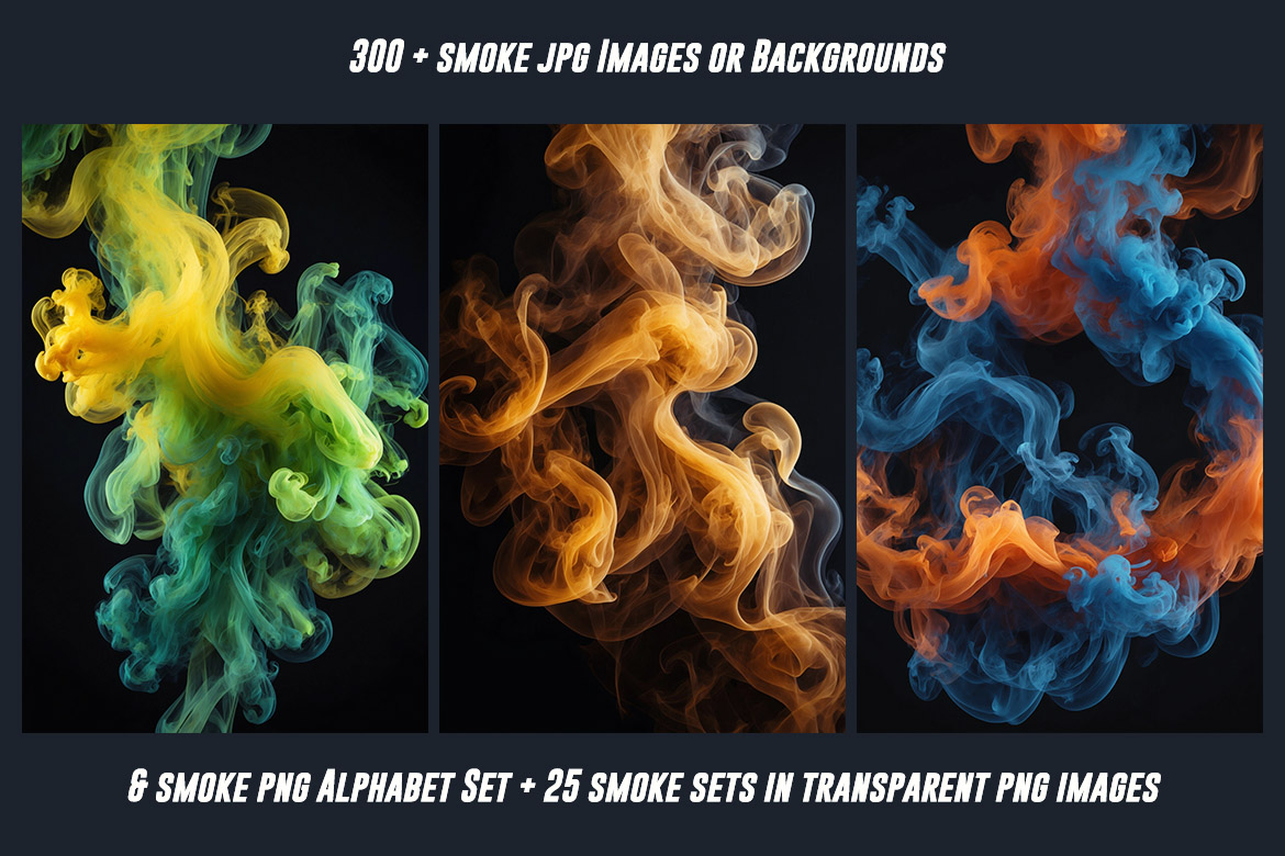 - smoke PNG alphabet set in 3 color versions – All letters from A – Z & numbers + special characters (3000 x 3000 pix)
