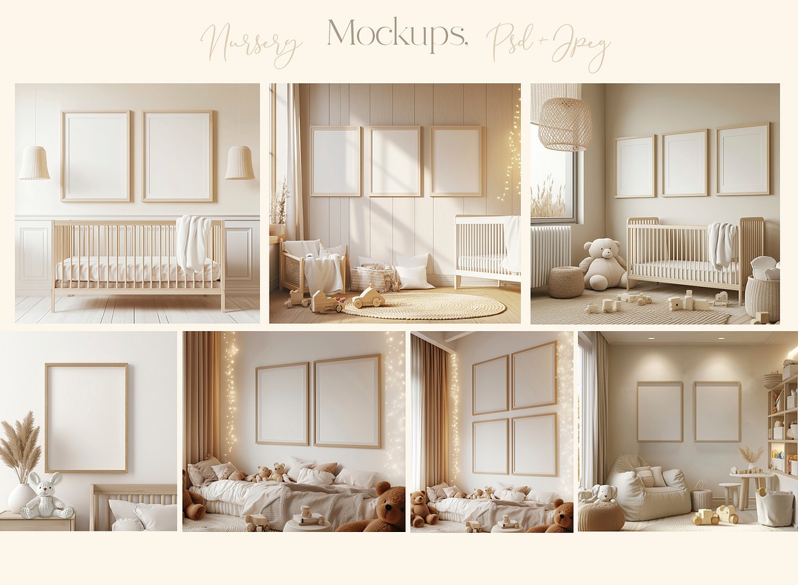 All these modern & nursery mockup templates from Designwork are ready for print or online use! MAIN USAGE: great for your digital art presentations: flyers, posters, greeting cards or branding. Enjoy 😉