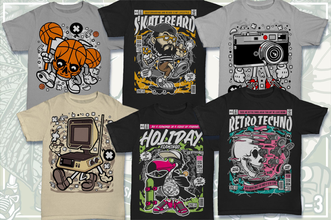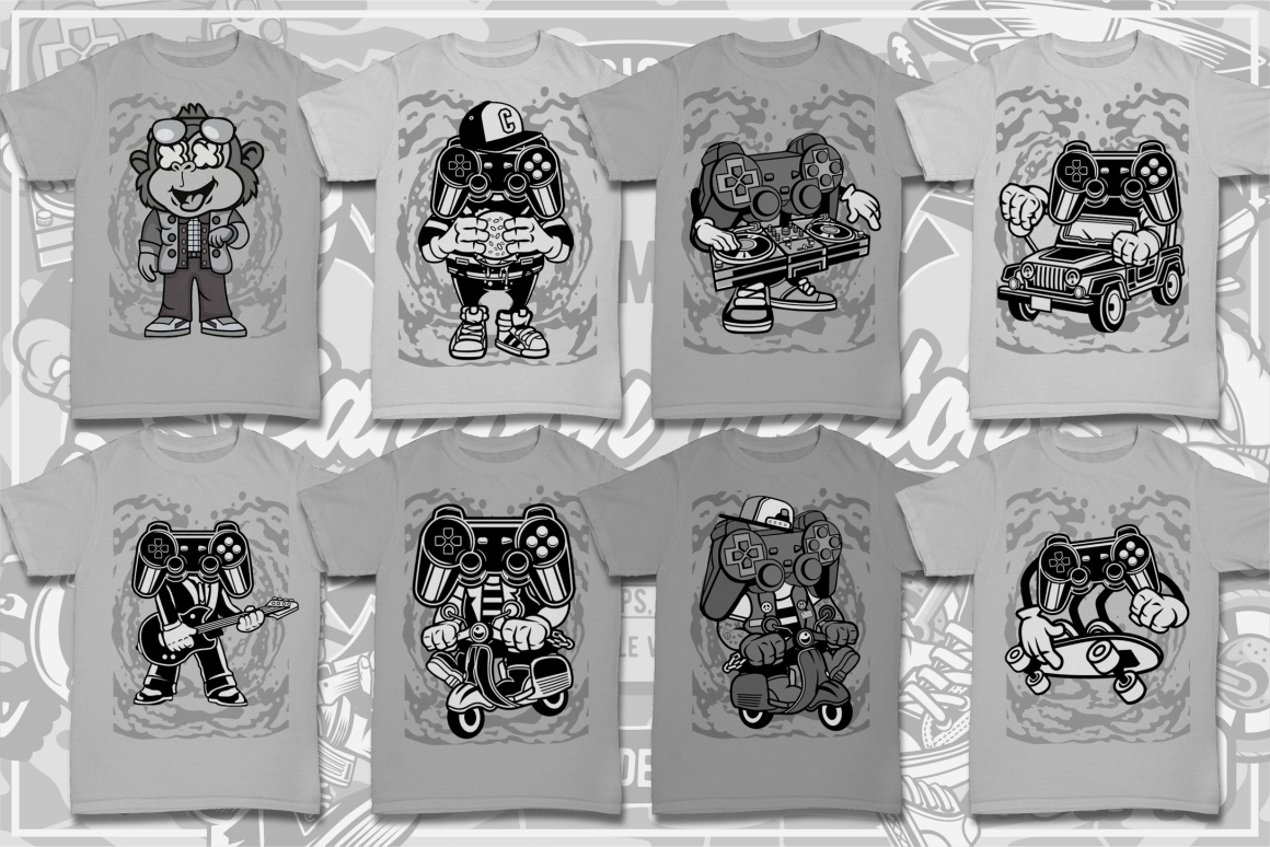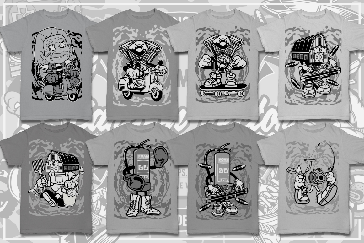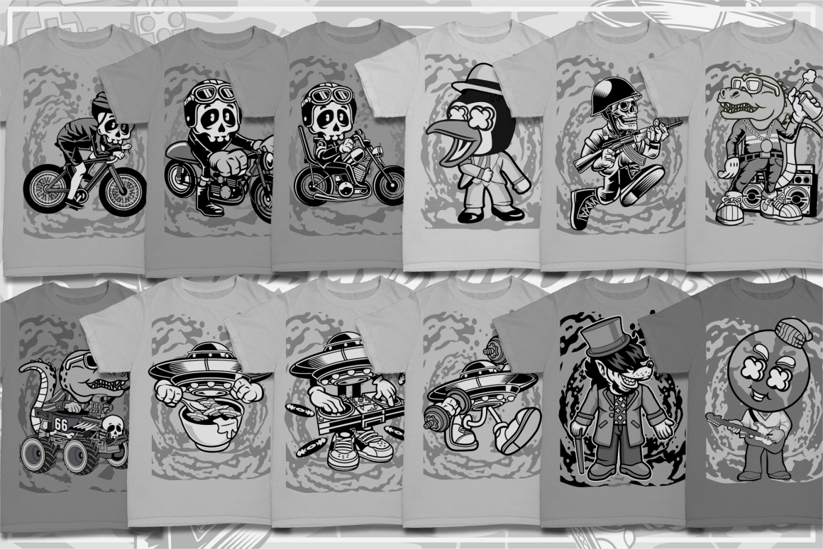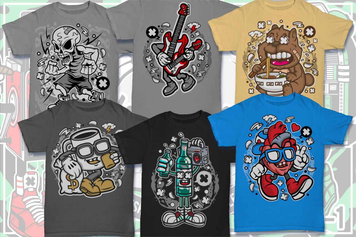 If you need something new & trendy in your vector graphics library or some cool illustrations for your new project we have a unique & super BIG vector illustrations bundle for you 🙂 Already 4th really HUGE bundle from Dan Roach. This time with 1075 professional vector designs or illustrations with cartoon, funny & POP culture style. You can create unique t-shirt designs, stickers, badges, posters, invitations or logo designs with various styles.