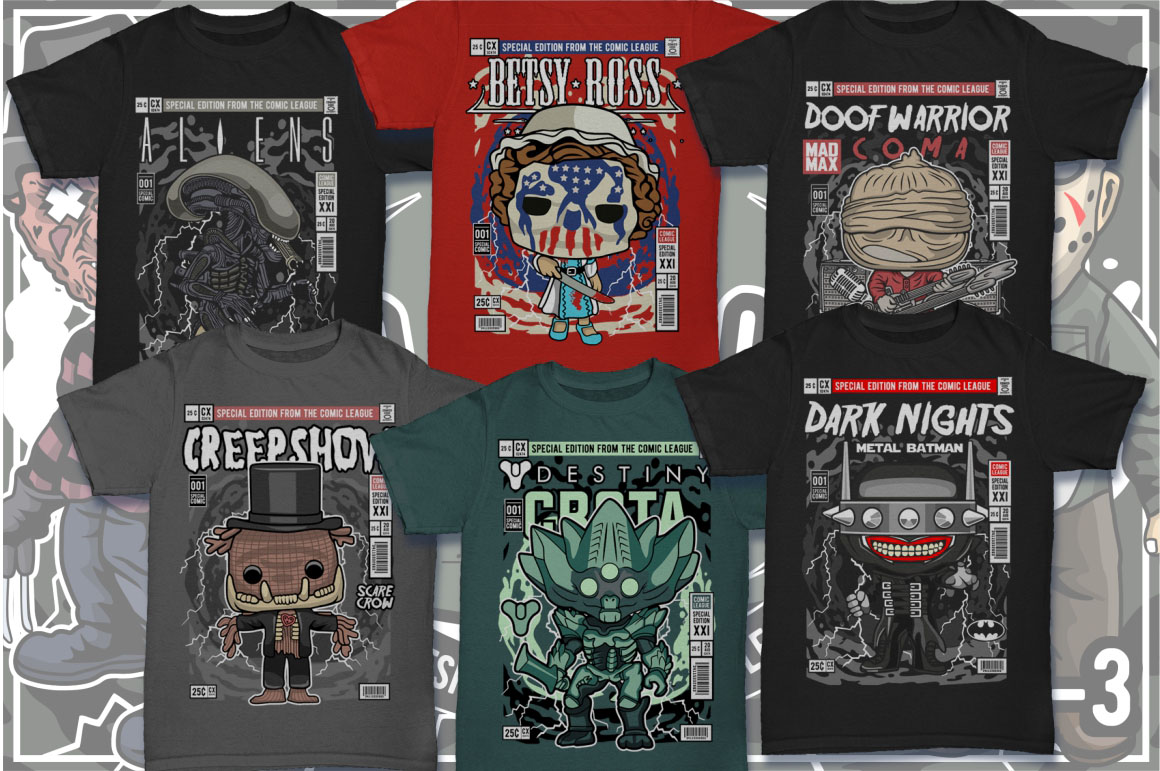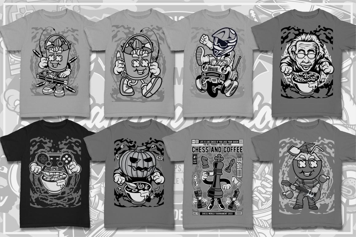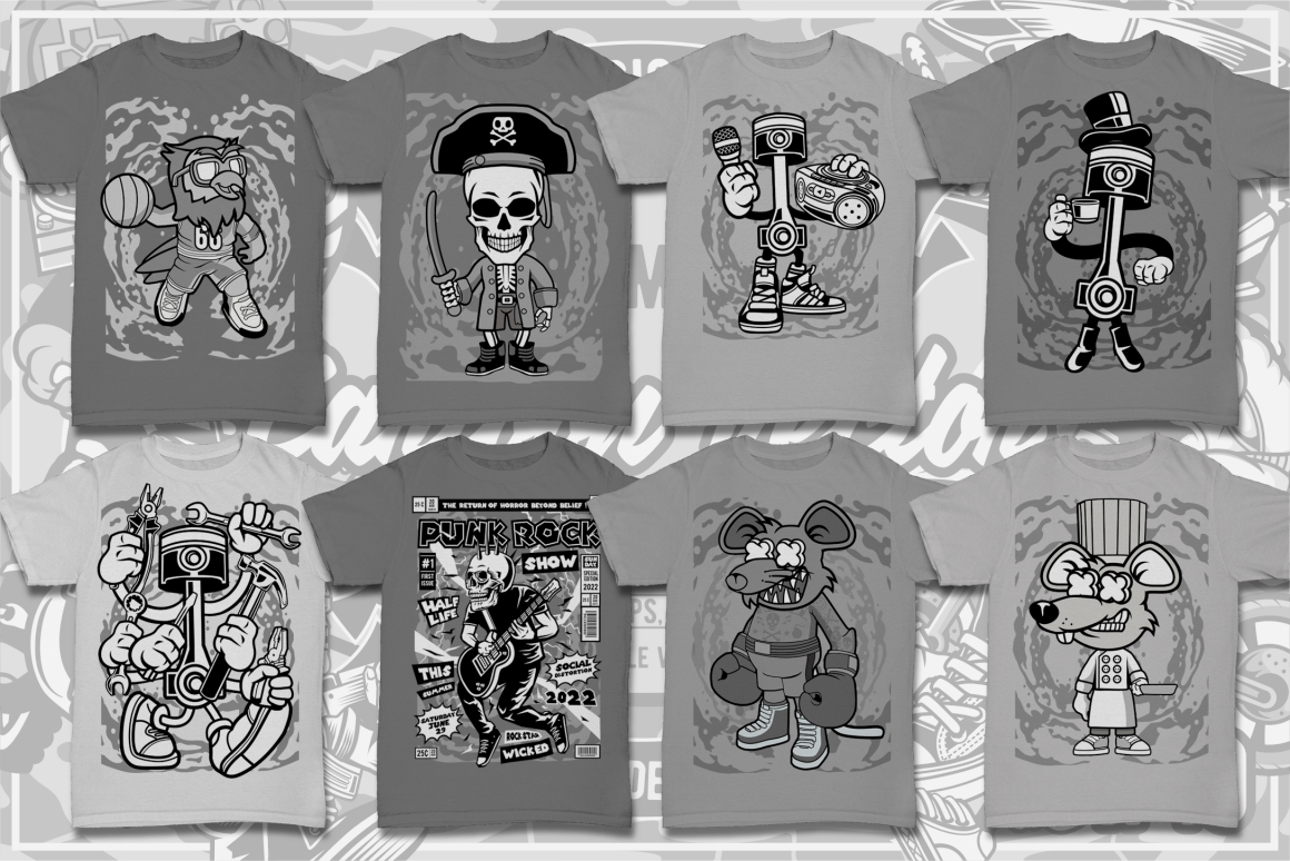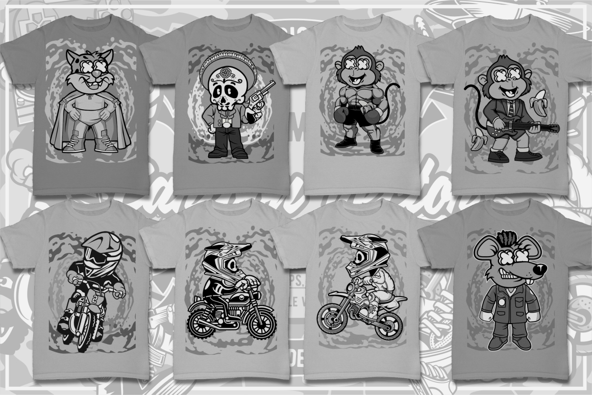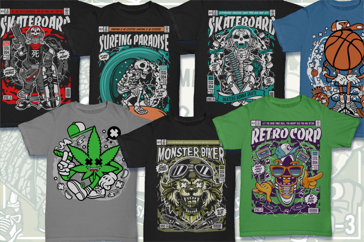 If you need something new & trendy in your vector graphics library or some cool illustrations for your new project we have a unique & super BIG vector illustrations bundle for you 🙂 Already 4th really HUGE bundle from Dan Roach. This time with 1075 professional vector designs or illustrations with cartoon, funny & POP culture style. You can create unique t-shirt designs, stickers, badges, posters, invitations or logo designs with various styles.