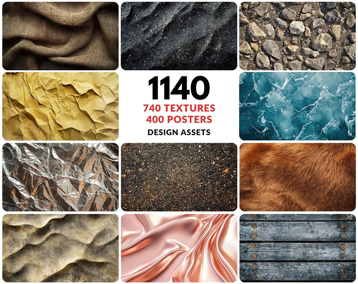 Elevate your creative projects with our massive collection of 1140+ high-resolution textures and posters! This comprehensive pack includes 740 diverse textures and a bonus of 400 colorful posters or wallpapers, perfect for artists, designers, and digital creators of all kinds.