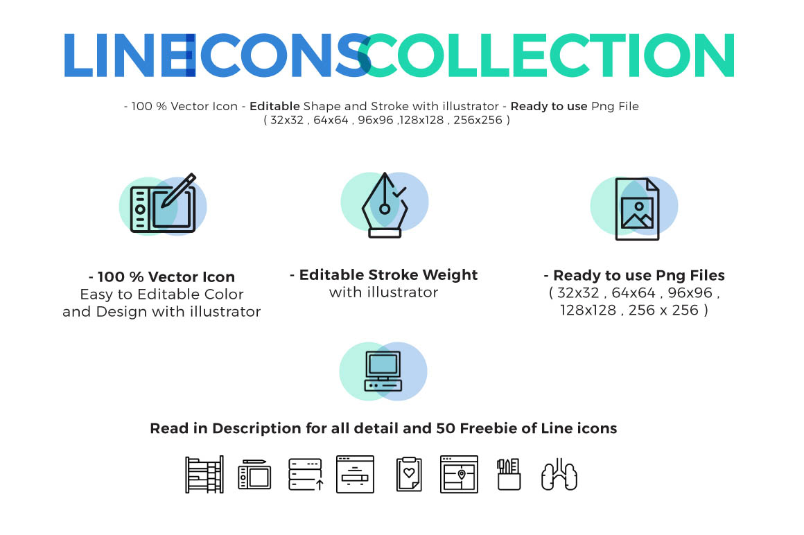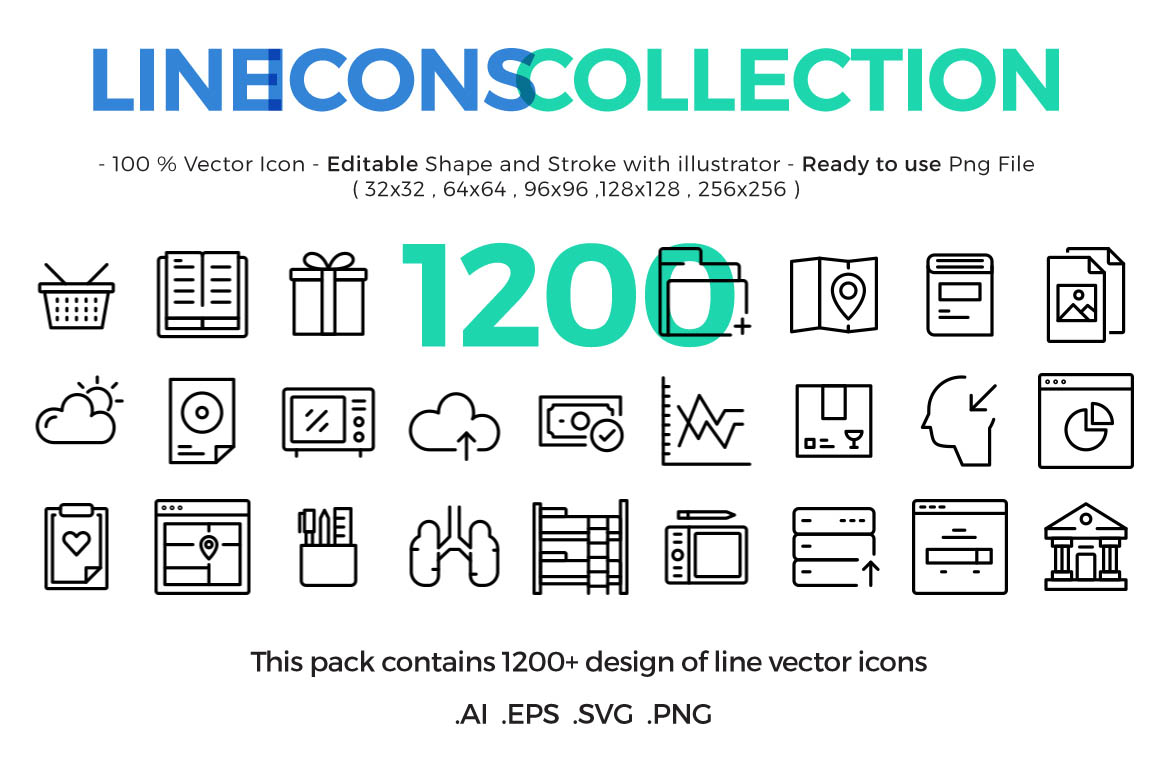 - more than 1200 unique line icons & 100s of vector illustrations!
