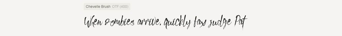 Chevelle Brush is an unique brush typeface. Suitable for your event, greeting cards, design of water-based paints, signature, logo, correspondence, and a variety of other purposes.