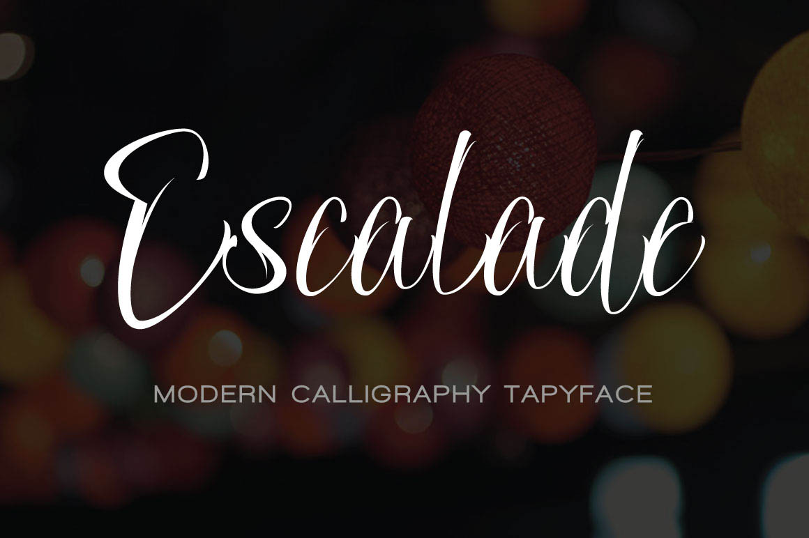 Escalade is an awesome modern calligraphy. Suitable for wedding invitations, greeting cards, design of water-based paints, correspondence, and a variety of other purposes.