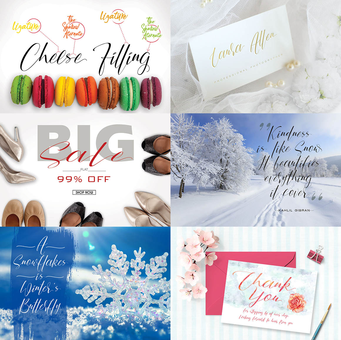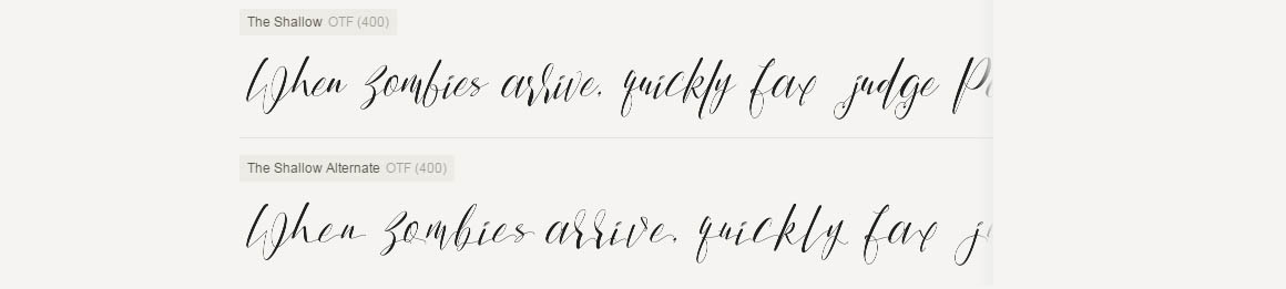 Introducing The Shallow! A Clean & Classy Handwriting-style with awesome Alternate characters! The Shallow to make it look even more natural than a standard font, include Ligatures (letters custom). Suitable for Branding, greeting cards, business card, apparel, t-shirt (your name), signature, logo, correspondence, and a variety of other purposes.