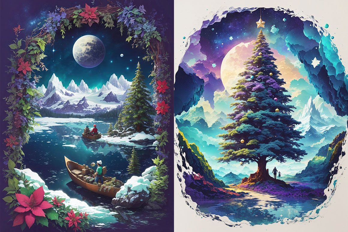 Amazing FREE graphic bundle with 13 fantasy & adventure style Christmas poster background designs in hi-res JPG image format from Deeezy. Download & enjoy đ