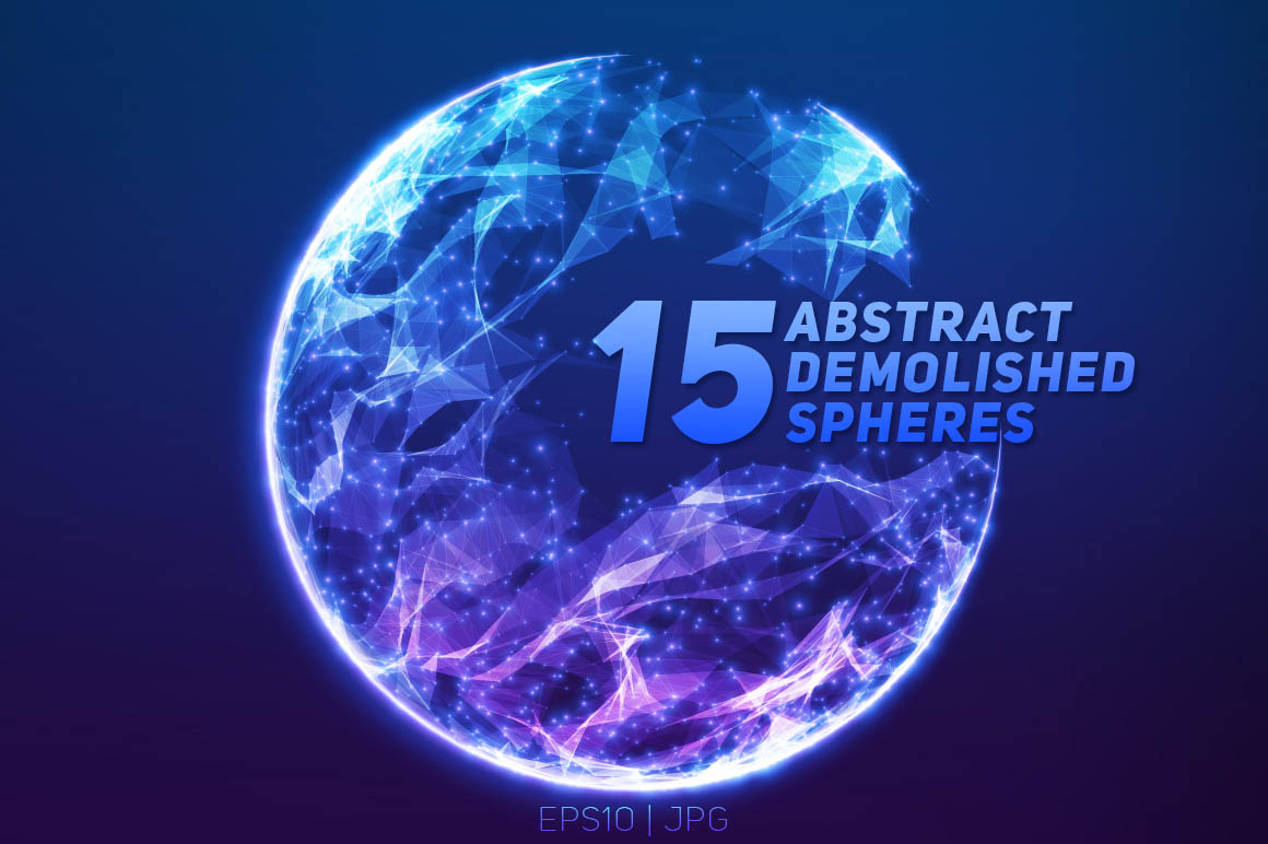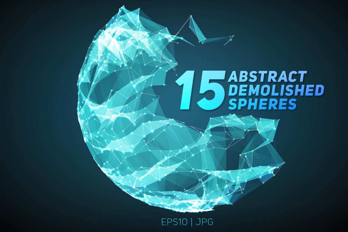 17 Abstract Explosion Backgrounds. Abstract mesh design. Abstract cyberspace or deep space. Glowing data pieces or stars. Layered EPS10 files. Hi-res JPG – 5000*5000 px.