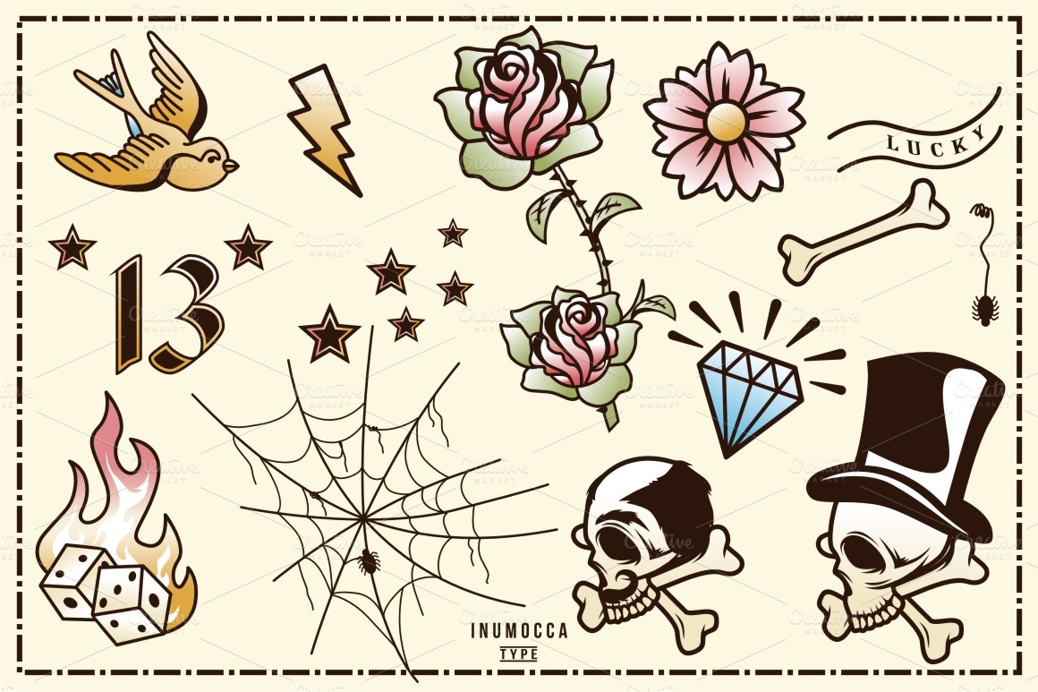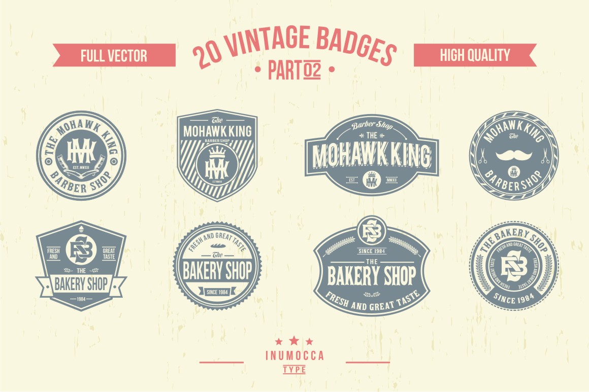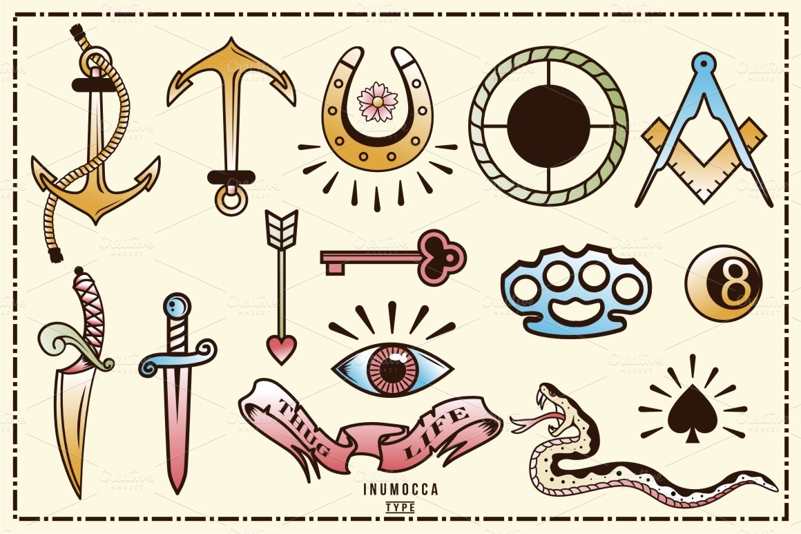 Easy to use and customizable, our vintage badges provide you with unprecedented flexibility. Our collection of high quality vintage badges is created by inu mocca. With original vector layers included, you can edit, scale, and fully customize them to make them useful for a variety of purposes. But that’s not all; with our bundle deal, you will also receive 40 tattoo elements can serve multiple purposes. Available in full colors along with layered vectors in ai, eps, and cdr file formats. You can use them in graphic design, as logos, on posts, and get them tattooed, and much more.