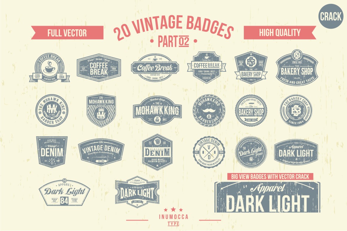 2. 20 Vintage Badges (CLEAR & CRACK) v.2 by inu mocca