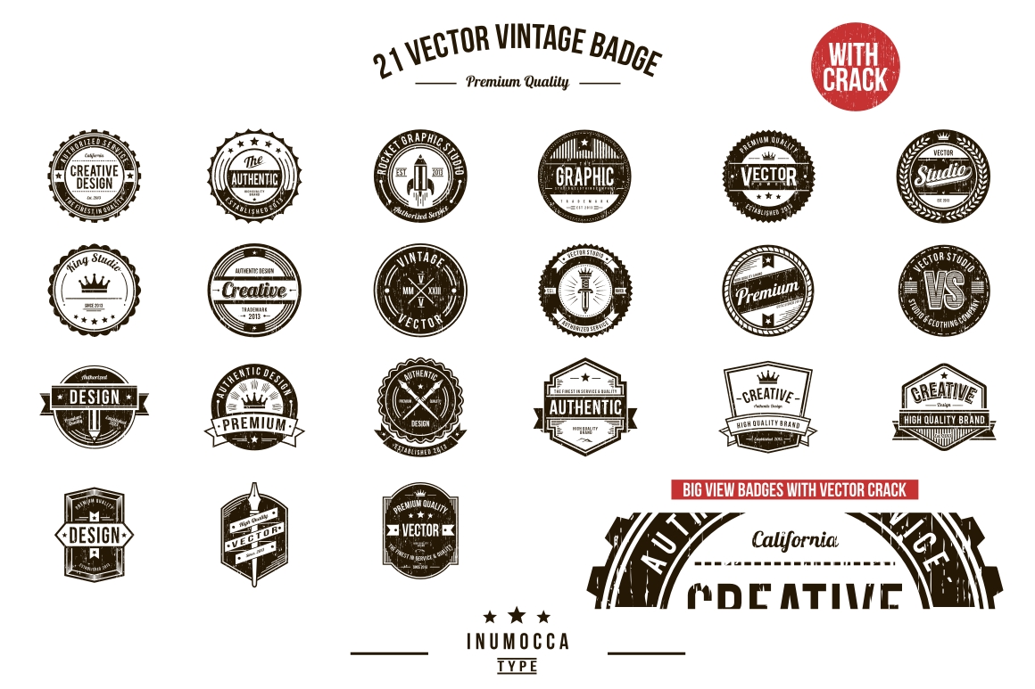 1. 21 Vintage Badges (CLEAR & CRACK) v.1 by inu mocca