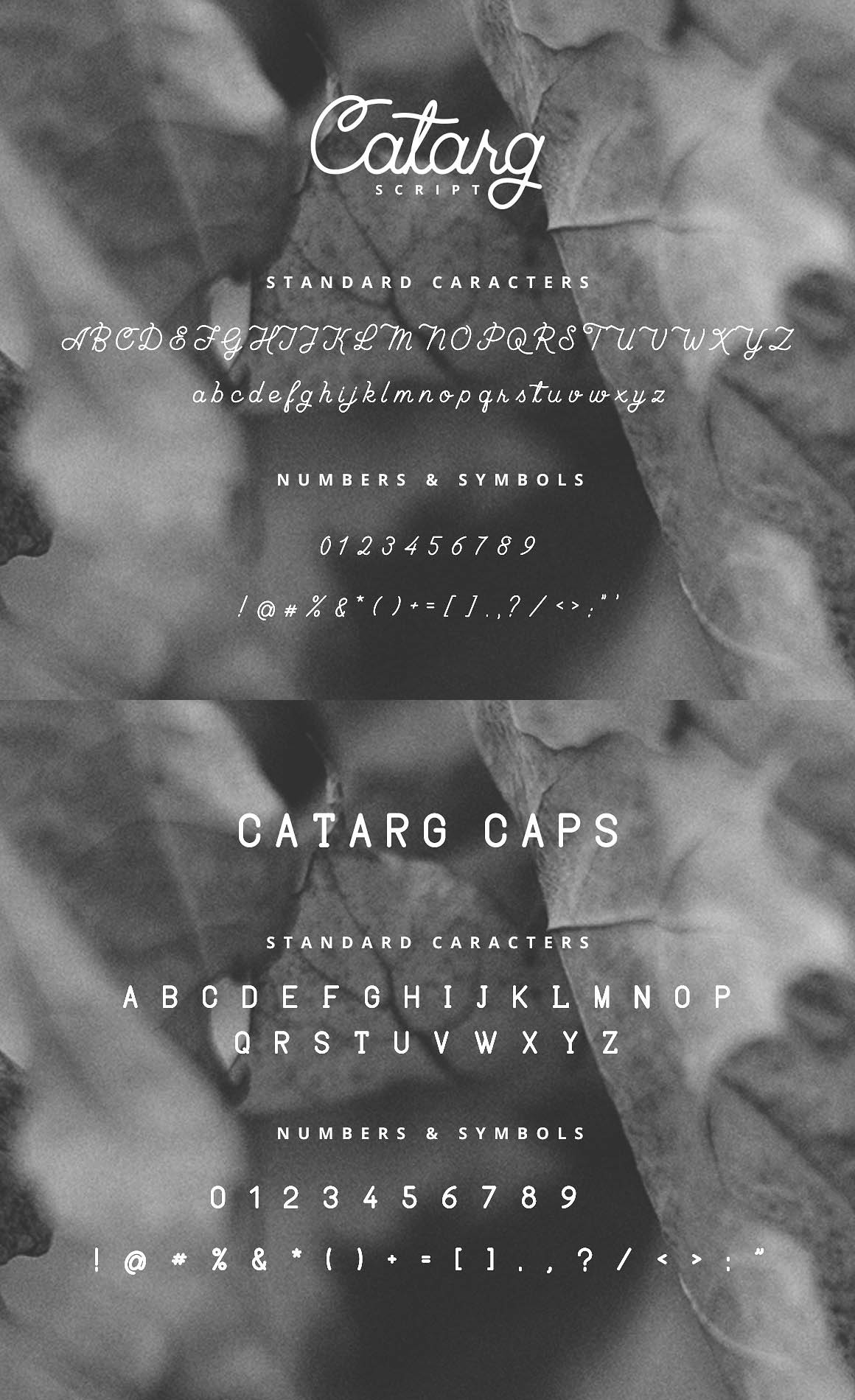Catarg is a 2 font family with a mono weight cursive script and a complementary subtly rounded sans-serif. Inspired by traditional script lettering that typically used in vintage-themed designs. Catarg is suitable for any project that requires the natural hand lettering feel as the core design elements; such as logo, wedding invitation, greeting card, poster, etc.