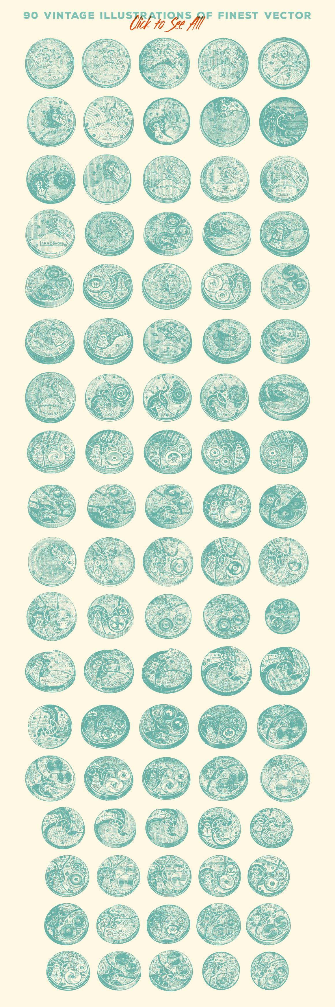 - Delicate gorgeous illustrations of timepiece machinery. Click on preview #3 and scroll down to see all 90 illustrations.