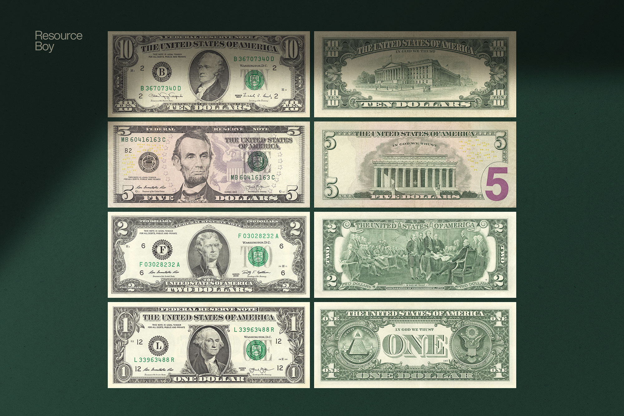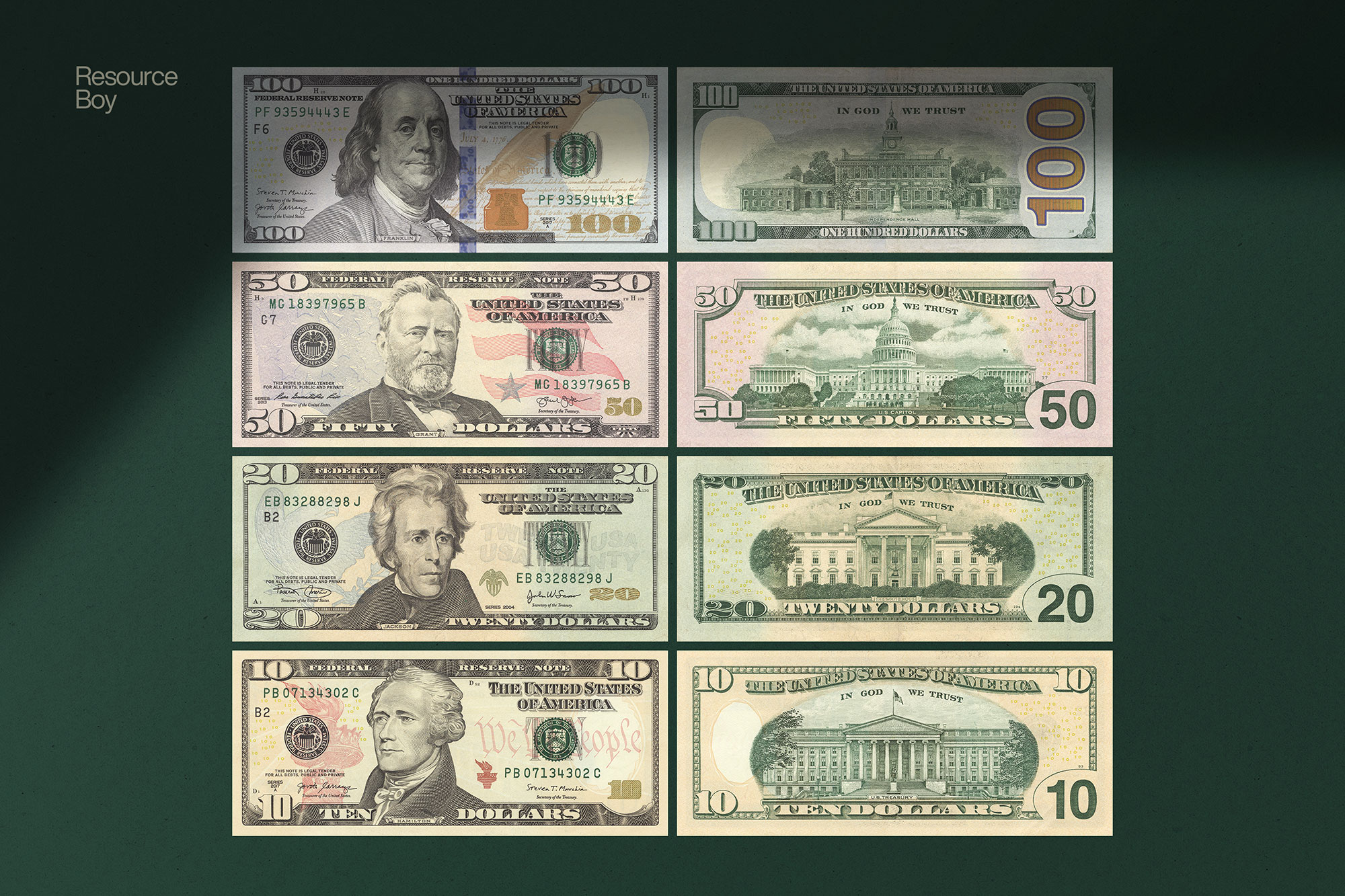 16 dree Dollar – paper money textures or PNG shapes from Resource Boy. Download & enjoy đ