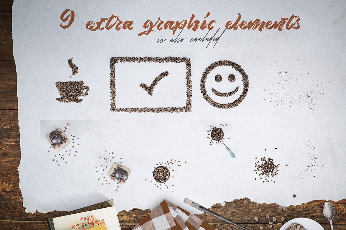 If you are looking for some realistic coffee beans style lettering & graphic ellements then you are at the right place because here you will get 3D style lettering, color font & elements for your new projects with coffee style. These graphics are in hi-res transparent PNG formats so all are great for your new web design or any print design projects. Enjoy 😉
