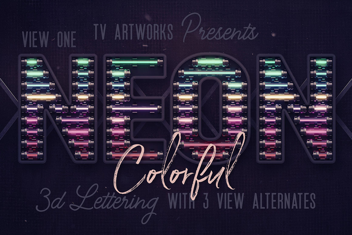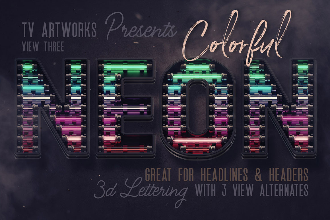 Super creative & unique 3D typography bundle with 7 various NEON style 3D sets – 29 lettering sets. These days are neon style very popular so hope these graphics & color fonts will help you with your new projects. If you need to create some new promo text, header, poster or advertisment you need to check this deal! All these letterings are great for any print or web projects, so maybe it’s time to add something creative and unique to your typography toolbox 😉