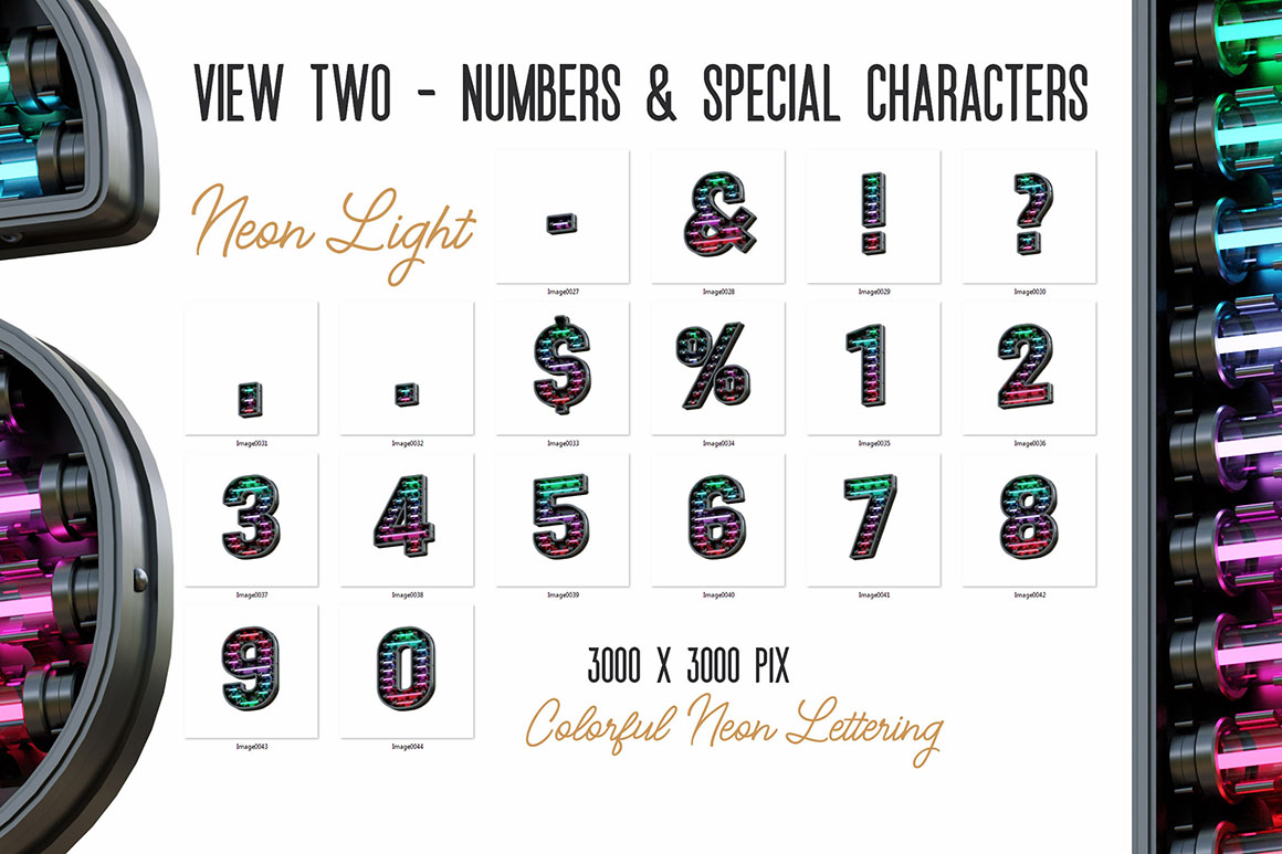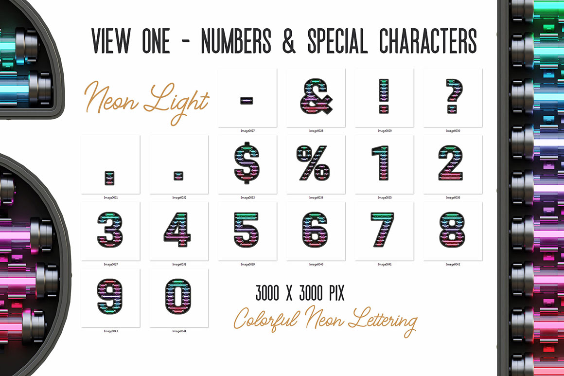 - 7 transparent PNG letterings: 6 NEON + 1 Second font lettering (3000 x 3000 pix)