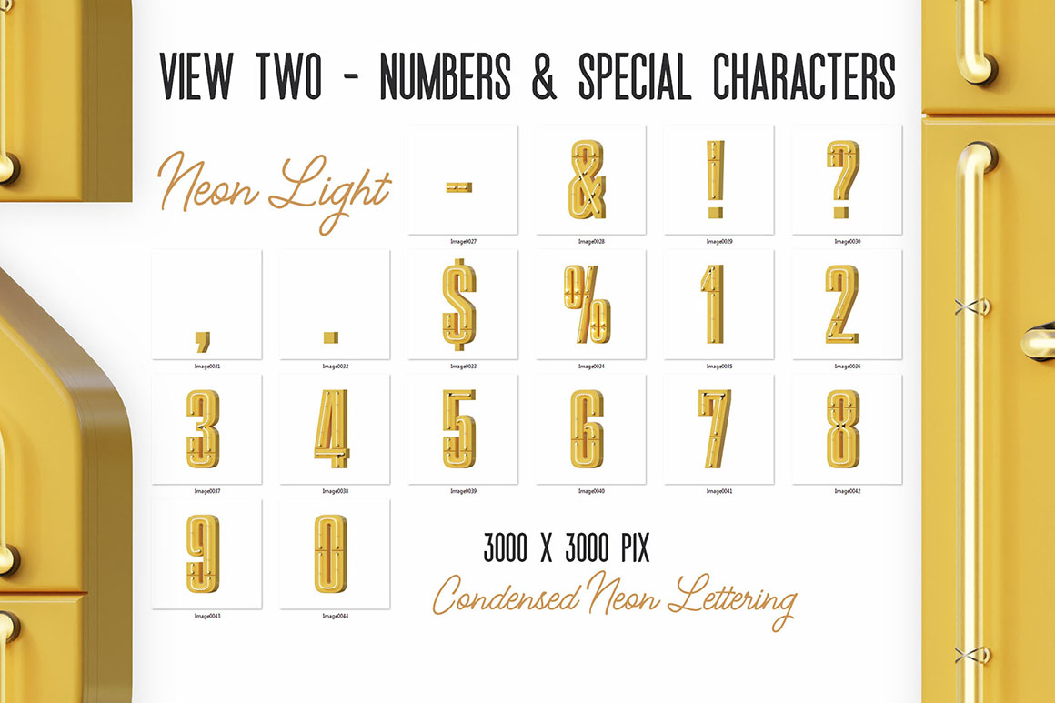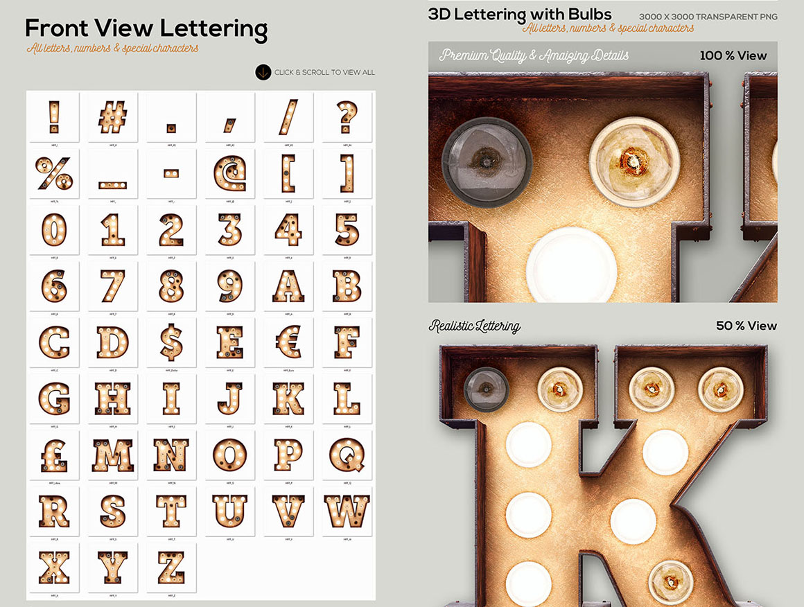 - transparent PNG letterings: 3 various views (3000 x 3000 pix) – Alphabet A-Z, numbers 0-9 & special characters