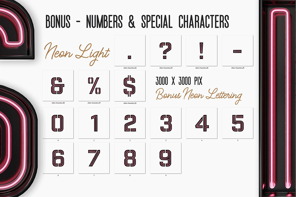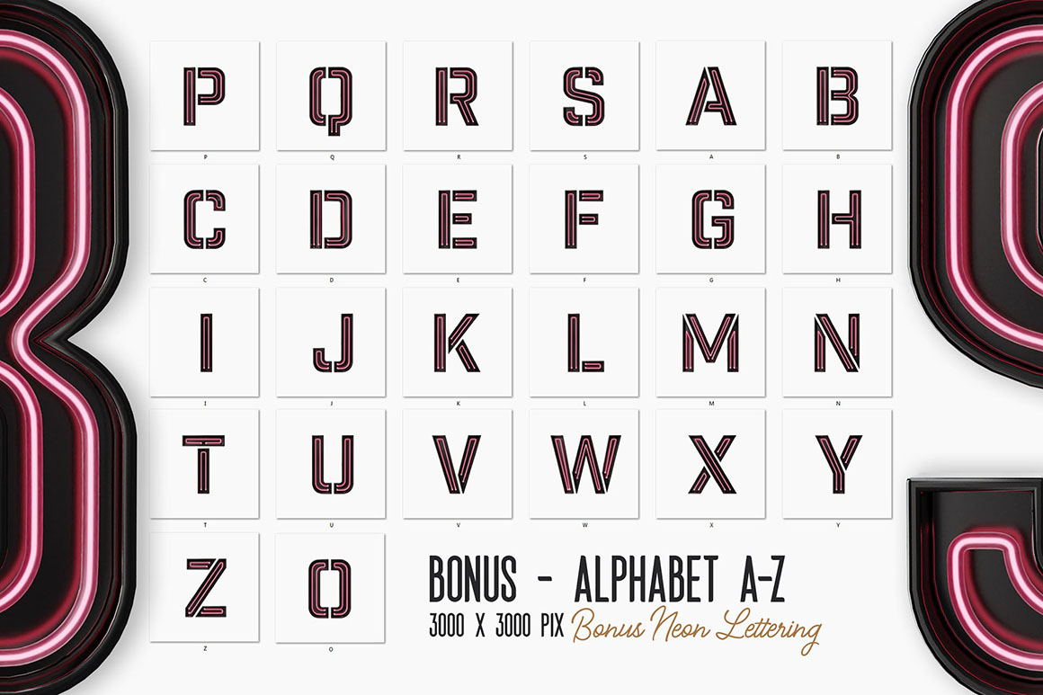- Download sample (1 view A-Z only 900×900 pix) neon lettering for FREE only here: https://deeezy.com/product/13856