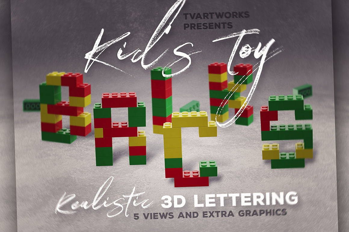 If you are looking for some funny toy bricks (lego) & realistic 3D letterings then you are at the right place because here you will get 3D style letterings for your new projects with cool style. These graphics are in hi-res transparent PNG formats so all are great for your new web design or any print design projects. Enjoy 😉