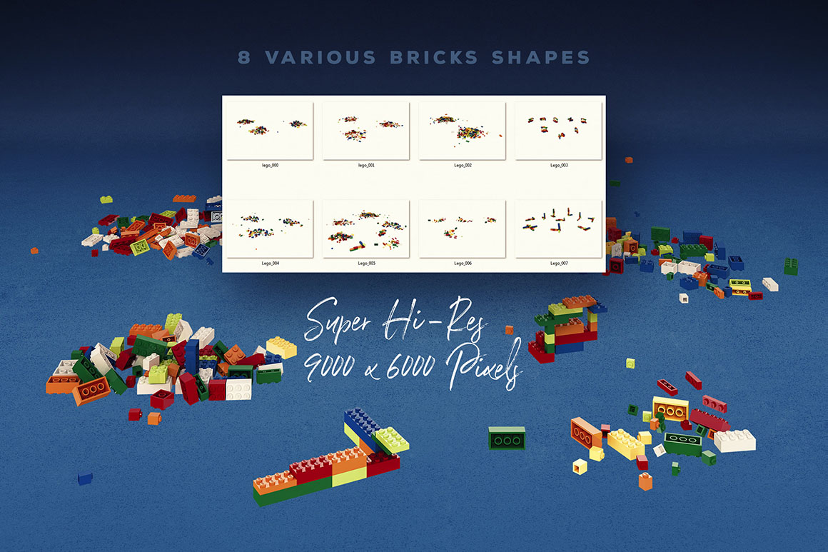 - 8 hi-res PNG various bricks shapes (9000 x 6000 pix)