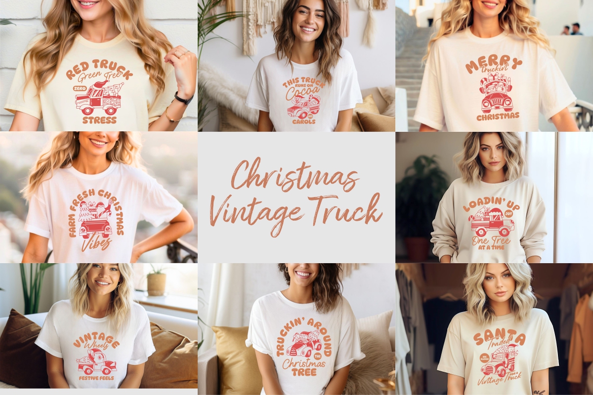 - Christmas Vintage Truck Bundle – timeless red truck holiday scenes