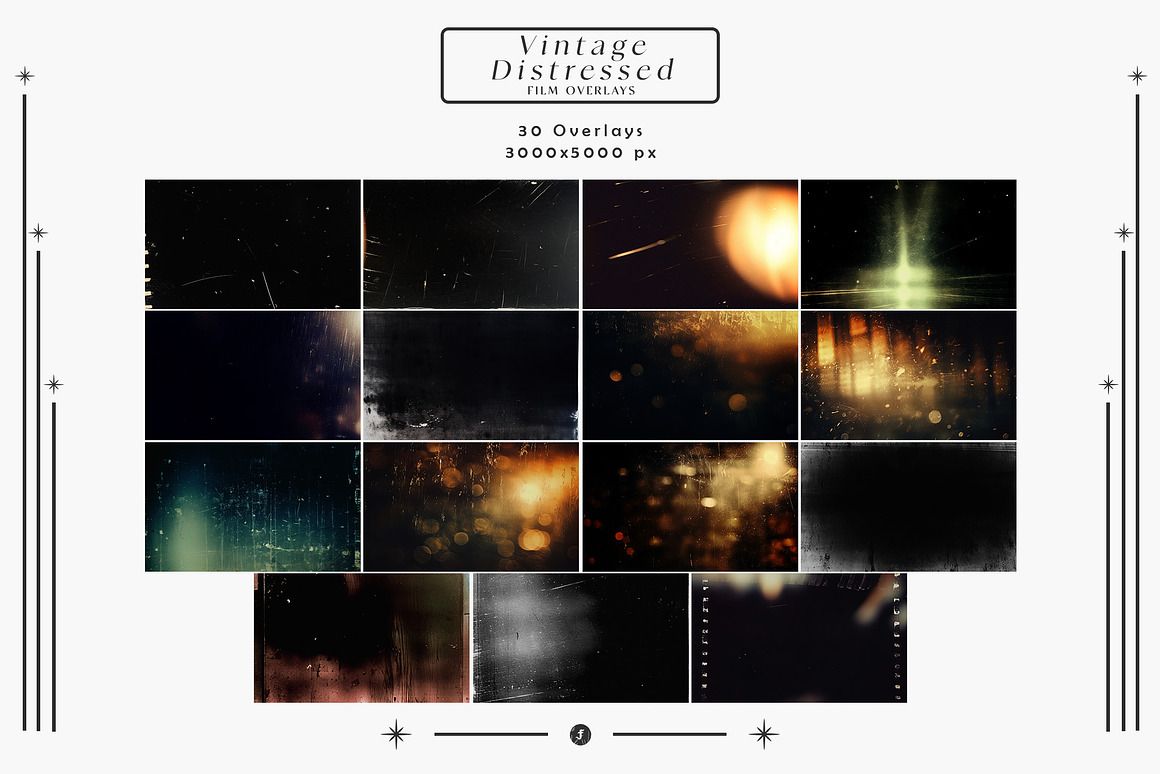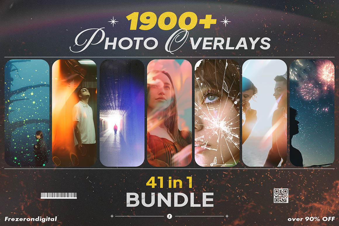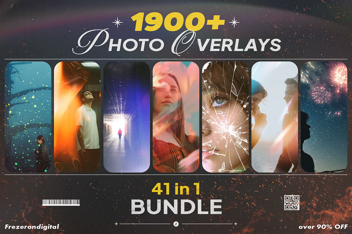 We’re trying to get the best & unique deals on the market, and this is one of them. 1900 Photo Overlays Bundle by Freezerondigital contains 41 photo overlay effect sets. All these overlay images & textures are in hi-res format ready for your next online or print projects.